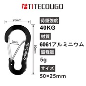 【最大安全強度】約40kg(縦軸方向)強度範囲以内でご使用ください。このカラビナは登山用ではございません。(クライミング&登山専用釦として利用できません、予めご承知ください),ヒント:重いものをぶら下げた場合は、取扱説明書をよく参照してください。実際に受けた重力は、受力方向の違いによって違いますので、ご注意ください。