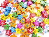 沢山使える100個入りで星形のカラフルポップなウッドビーズです。 木のクラフト感にあふれたぬくもり、颯爽とした軽さがカジュアル感を演出するアイテムとして人気です 木製のビーズはカジュアルやナチュラルテイストを演出するのにぴったりなのは勿論 素材を生かしたものや、カラフルな色・形さまざまなバリエーションが楽しいビーズやパーツたちなので 組み合わせるパーツでいろいろな楽しみ方が出ます。 手作りのネックレスやブレスレット、アクセサリー作りにアクセサリーのポイントにぴったりなものや 存在感のある大粒タイプなど…各種そろっています。