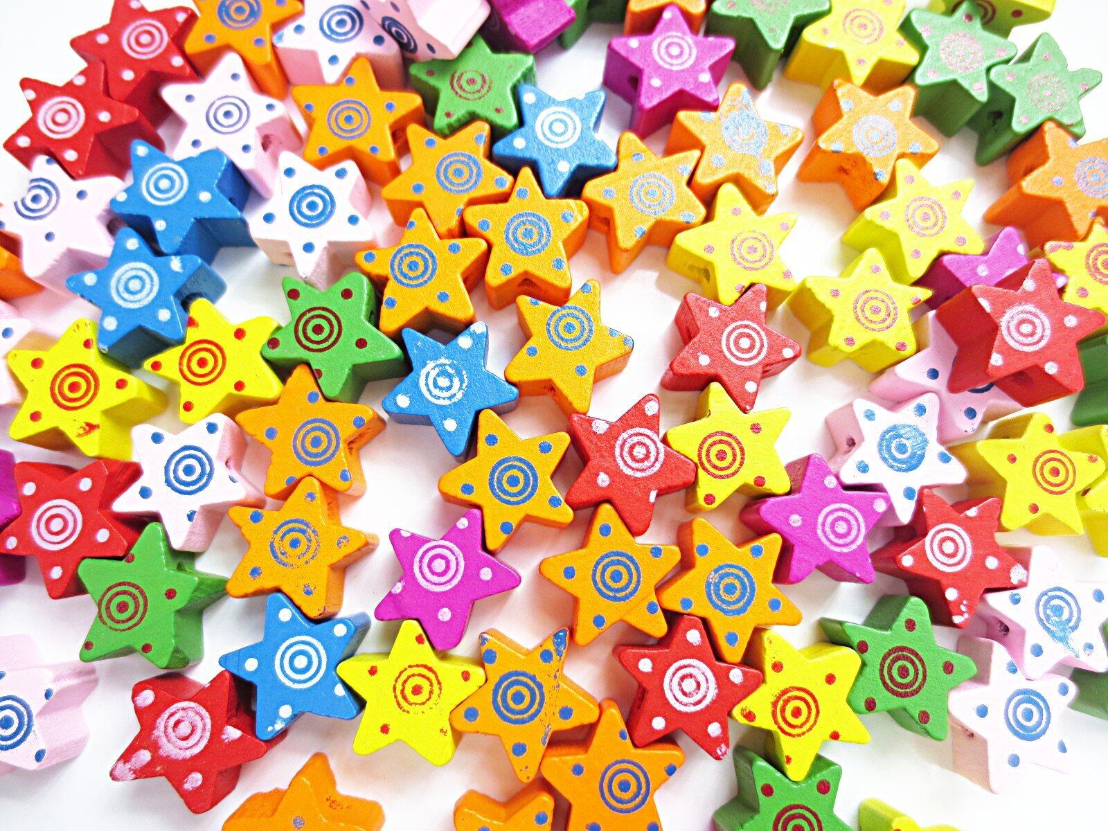 お得 100個セット カラフルMIX 可愛い星形 ウッドビーズ 15mm 木製 アクセサリー材料 ハンドメイドパーツ ヒューイ雑貨
