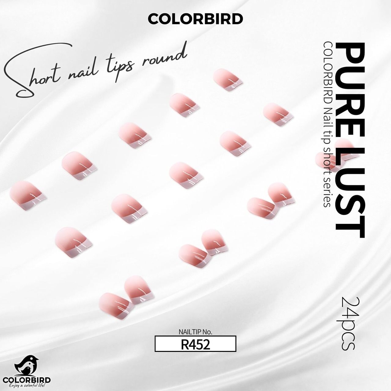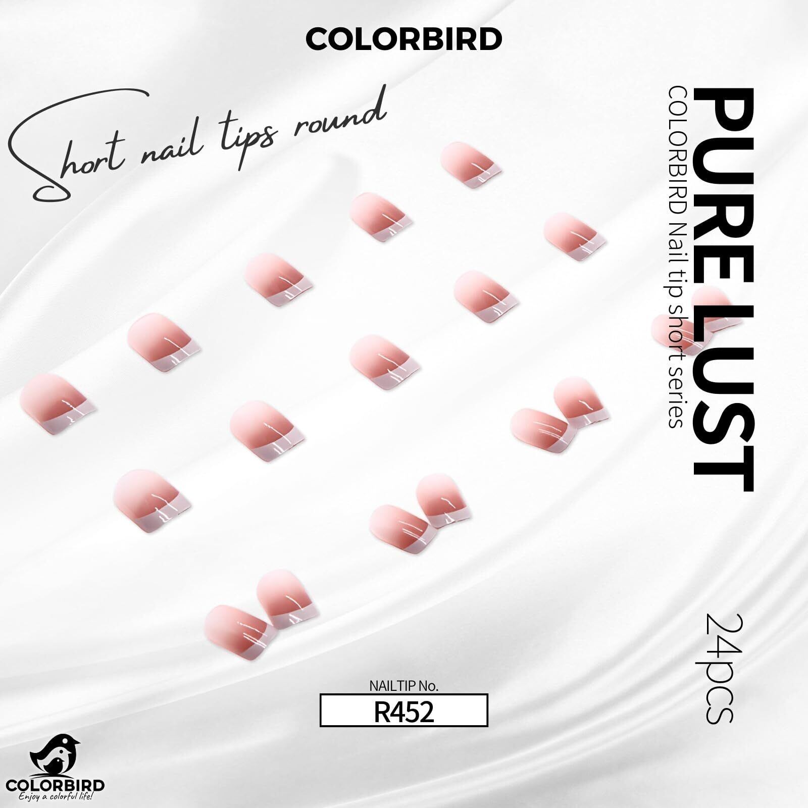 COLORBIRD ネイルチップ ショート 24枚 ピンク フレンチ ネイル 付け爪 チップ 短め 可愛い スクエアオフ (R452)