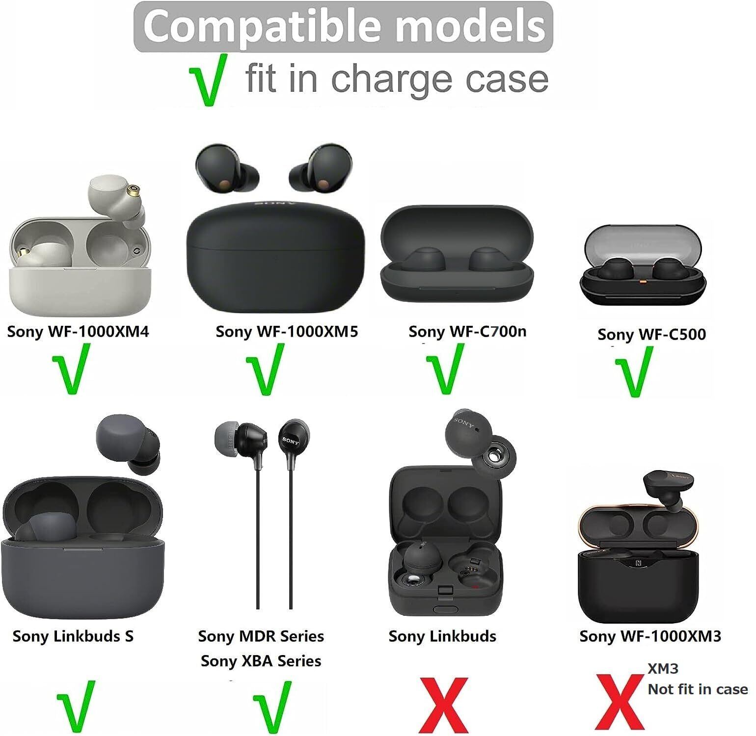 WF-1000XM4、WF-1000XM5、 WF-C500、LinkBuds S WF-LS900N等イヤホンに適合するFit in the Case低反発ウレタン製イヤーピースです。イヤホン付属イヤーピースの装着感が良くない、或いはイヤーピース紛失場合最高の交換品です。