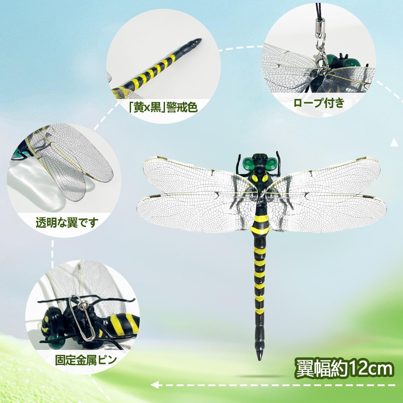 天敵で虫除けトンボ 正規品 12cm級 蜻蛉 おにやんまくん虫よけ 昆虫 プハエ 蚊 害虫蜂対策グッズキーホルダー フィギュア ストラップ付き 安全ピン付きブローチアウトドア キャンプ 釣り(2匹)