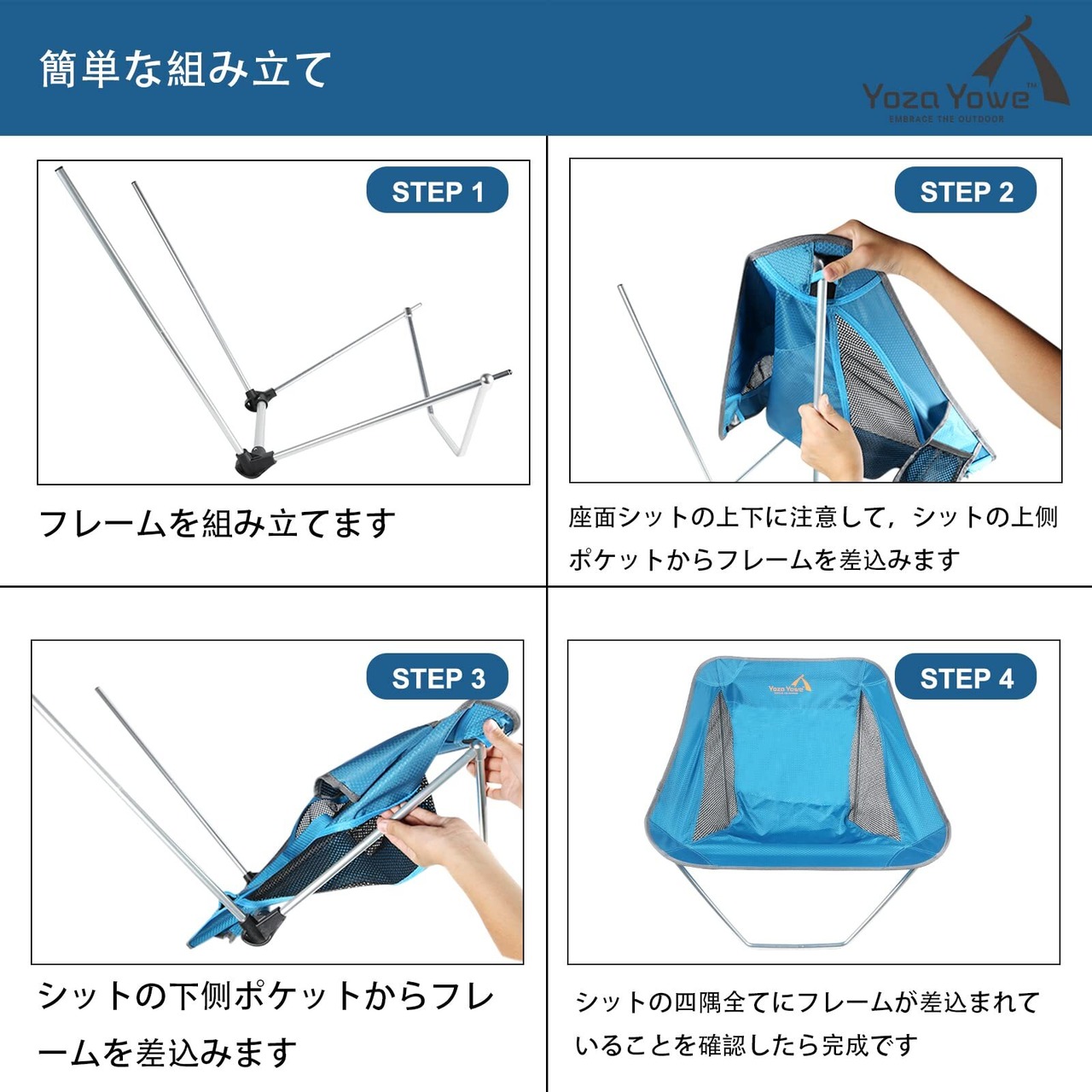 コンパクトで軽い:Yoza Yoweキャンピングチェアは、驚異的な軽さと耐久性超々ジュラルミンを採用 飛行機の機体も採用される材質。重量は790gだけ。 組み立て式なので、 收纳サイズは40センチメートル、完全にバックパックや機内持ち込み荷物のスーツを入れることができます