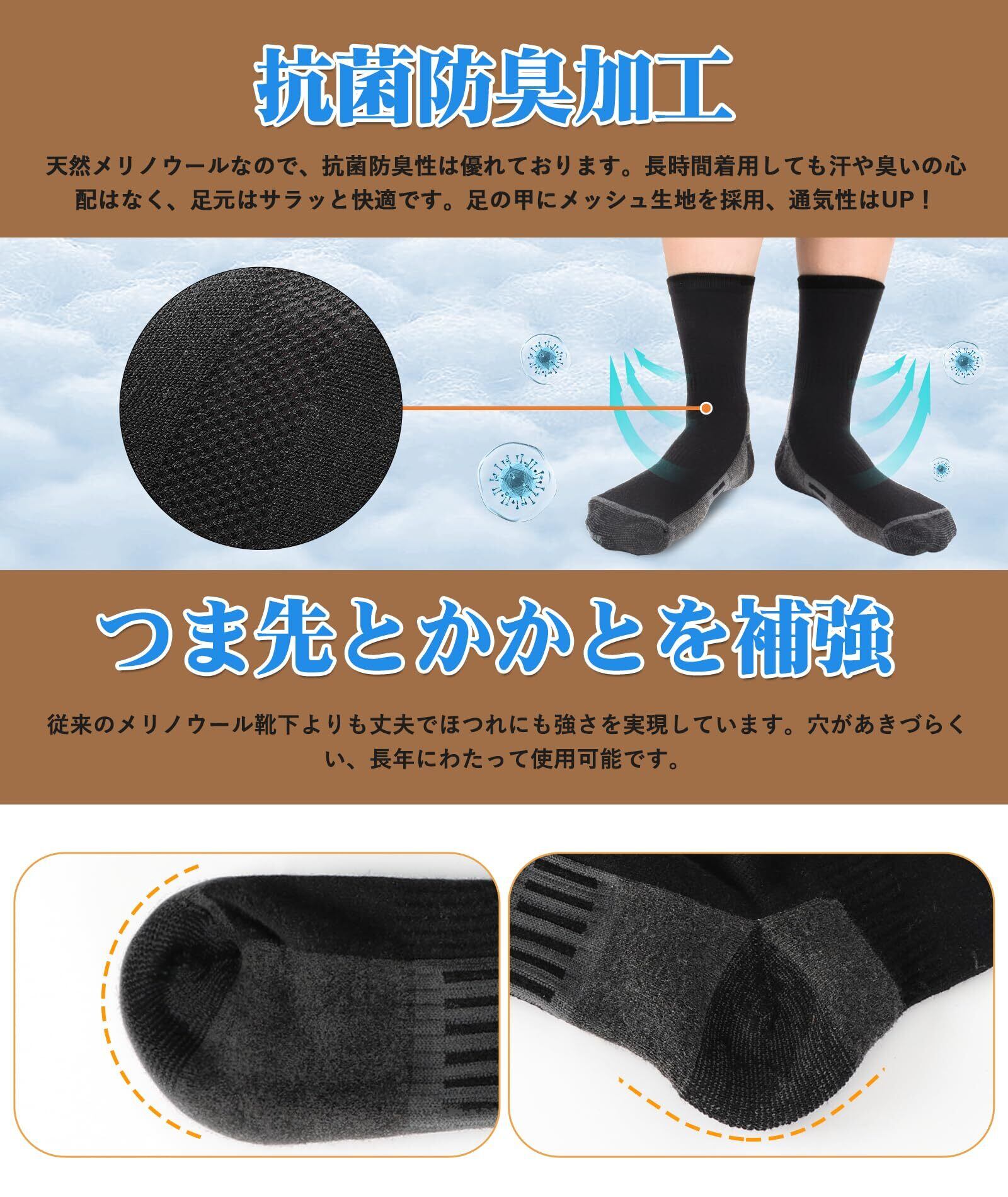 [HASOME] 靴下 メンズ 冬 【メリノウール・極寒でも暖かい】スポーツソックス 温かい靴下 パイル 厚手 吸湿発熱 着圧 吸汗消臭 耐久性 登山 アウトドア スキー キャンプ ランニング 3足セット