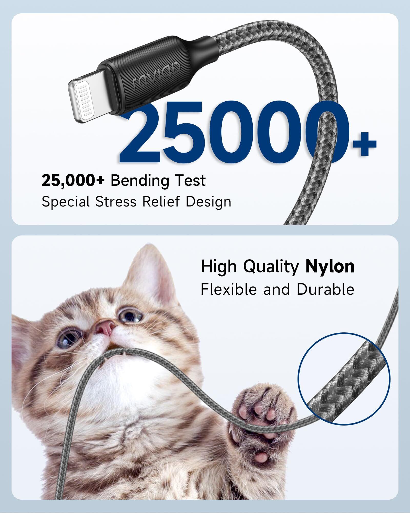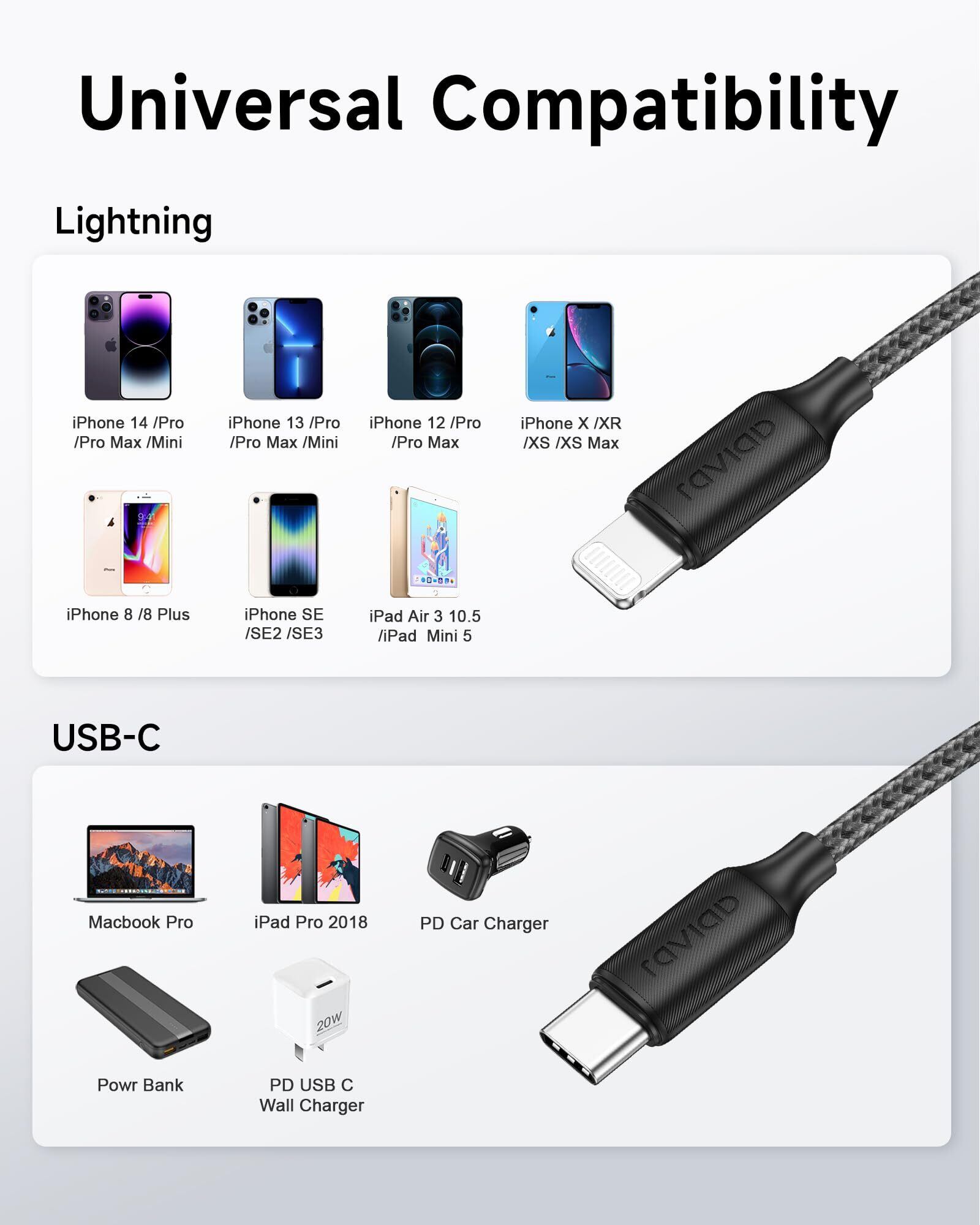 【互換性抜群】RAVIAD Lightning USB-C ケーブルすべてのライトニングデバイスのPD高速充電とデータ転送をサポートします。この Type C Lightningケーブル、iPhone 14 Pro Max/ iPhone 14 Pro/ iPhone 14/ iPhone 13 Pro Max/ iPhone 13 Pro/ iPhone 13/ iPhone 12 Pro Max/ iPhone 12 Pro/ iPhone 12/ iPhone 11 Pro Max/ iPhone 11 Pro/ iPhone11/ iPhone XS/ iPhone XR/ iPhone X/ iPhone 8 Plus/ 8 などに完全対応。