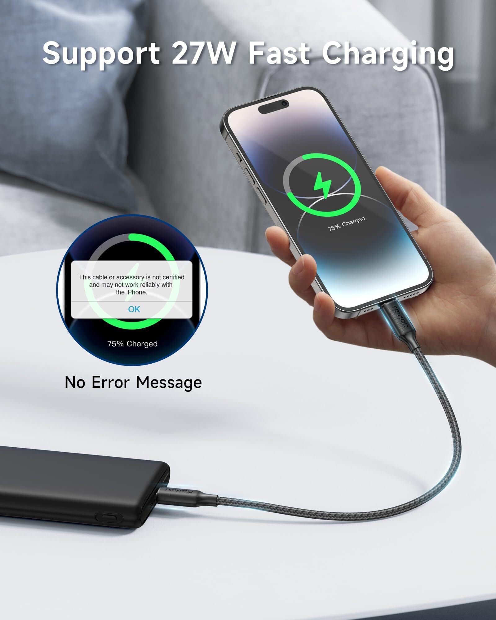 【安心のApple Mfi認証品】iPhone 充電ケーブルType-C Appleオリジナルとスマートチップを使用して、Appleデバイスを即座に認識し接続。USB-C to ライトニング PDケーブル、アップルデバイスへの完璧な互換性を満たしている性能であると共に、安心して長い間ご使用いただけます。