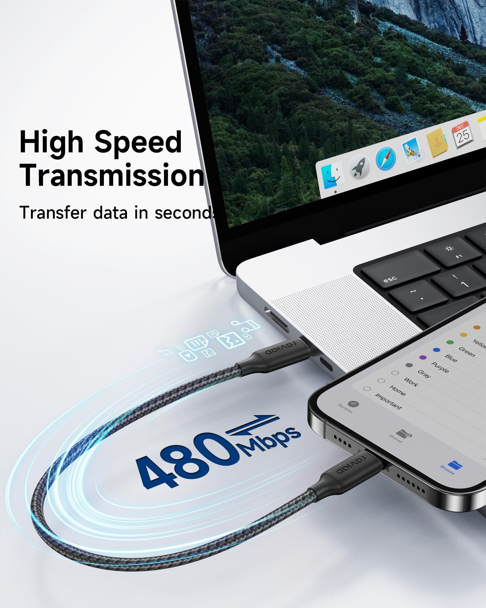 【PD高速充電対応】ライトニングケーブル タイプC PD急速充電、18W、20W、30W、36W、45W、61W、65W、87W、96WのアップルUSB-C電源アダプタと合わせて使われると。USB Type C Ligntning ケーブル は、iPhone を 30 分で 0% から 50% まで充電します。通常の充電器のほぼ 3 倍の速さです。データ転送速度は 480Mbps に達します。