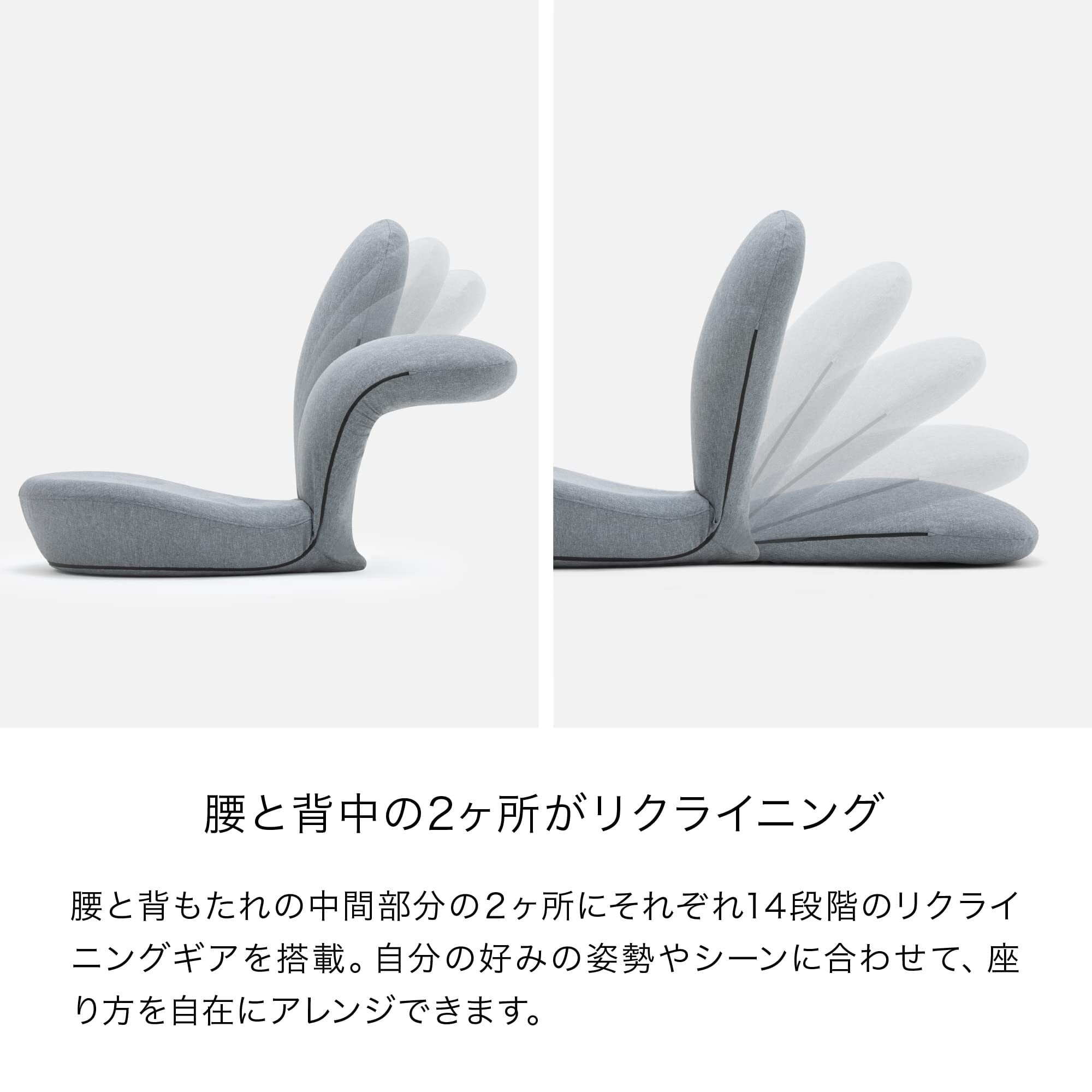 【腰と背中の2か所がリクライニング】 STRETCHCHAIRは、腰と背もたれの中間部分の2ヶ所にそれぞれ14段階のリクライニングギアを搭載。 14×14=合計196通りの座り角度を実現し、自分の好みの 姿勢 やシーンに合わせて、座り方を自在にアレンジできます。 読書をしたり、ゲームをしたり、 姿勢 がつい崩れてしまいがちなときにも、色々な座り方で良い 姿勢 を保つことができます。 肩や首、腰回りの コリ に悩むときは角度を変えてストレッチしてください。 コリ 対策にもなる快適 座椅子 です。