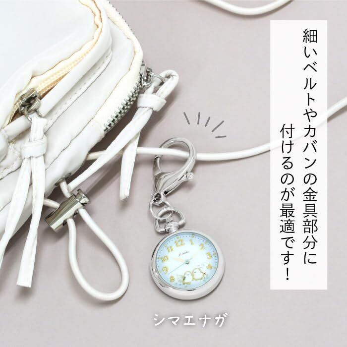 優しいタッチのアニマルイラストが可愛いキーチェーンウォッチ。数字も読みやすく、秒針の色がそれぞれ違うのもポイント。