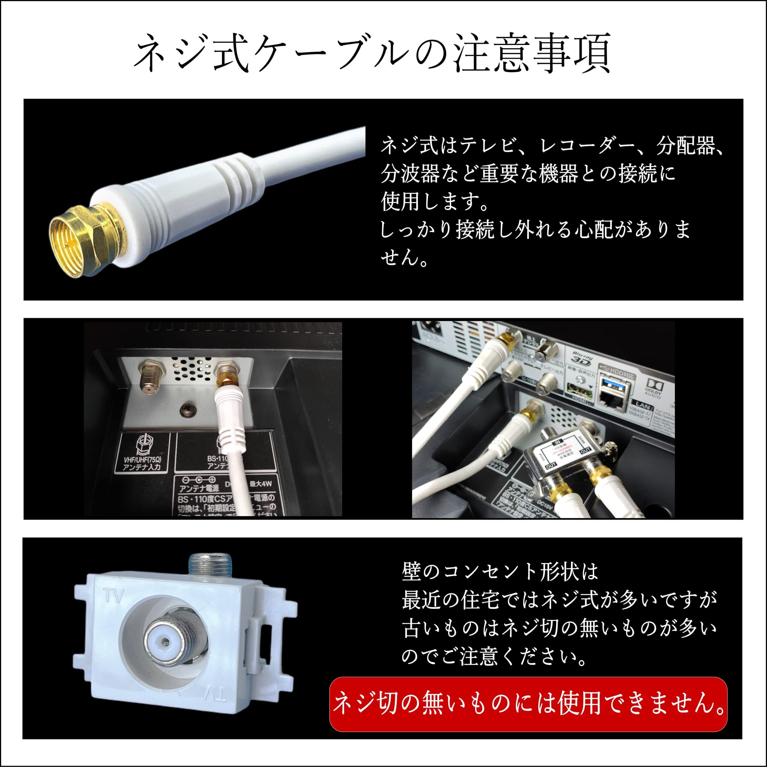 CNCTWO(コネクトツー) 【2本セット】テレビアンテナケーブル しっかり接続ネジ止めタイプ 短くスッキリ配線 (プラグ形状改良2023年モデル) 2K4K8K放送(3224MHz) 地デジ/BS/CS対応 C2F0Xx2 (1mx2本) | yankees
