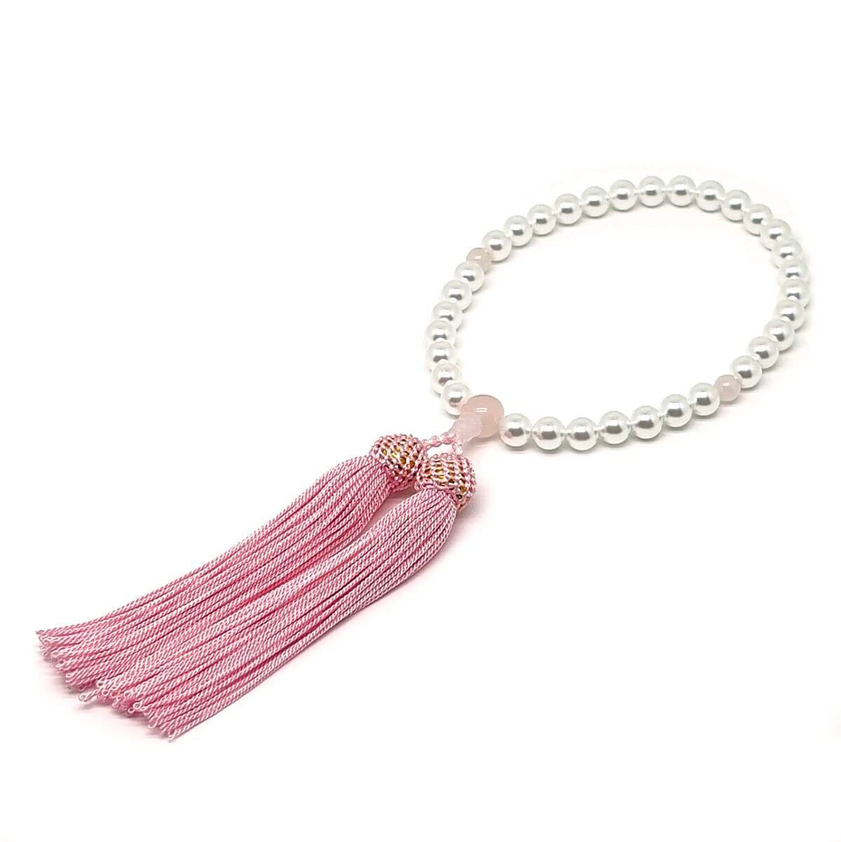 永善念珠屋 数珠 女性用 貝パール 【西陣織 数珠袋付き】天然貝核 人絹房 ピンク紅水晶 念珠 全ての宗派で使える じゅず 女性 念珠 手作り 記念品 葬儀 葬式 法事 法要 マイ数珠 (紅水晶) | yankees