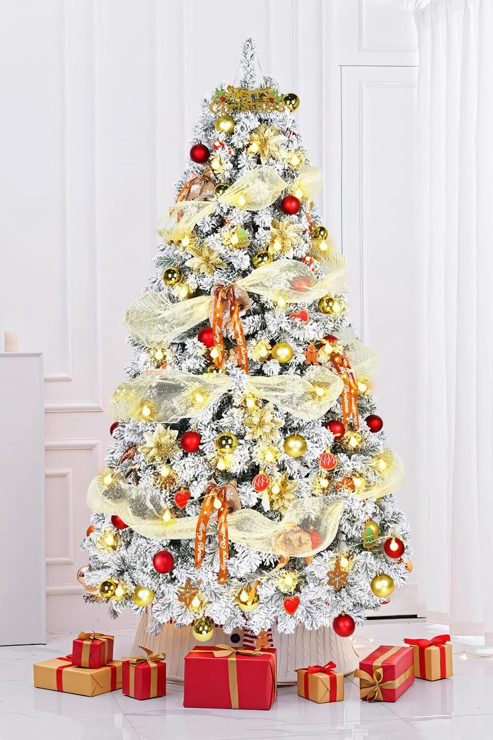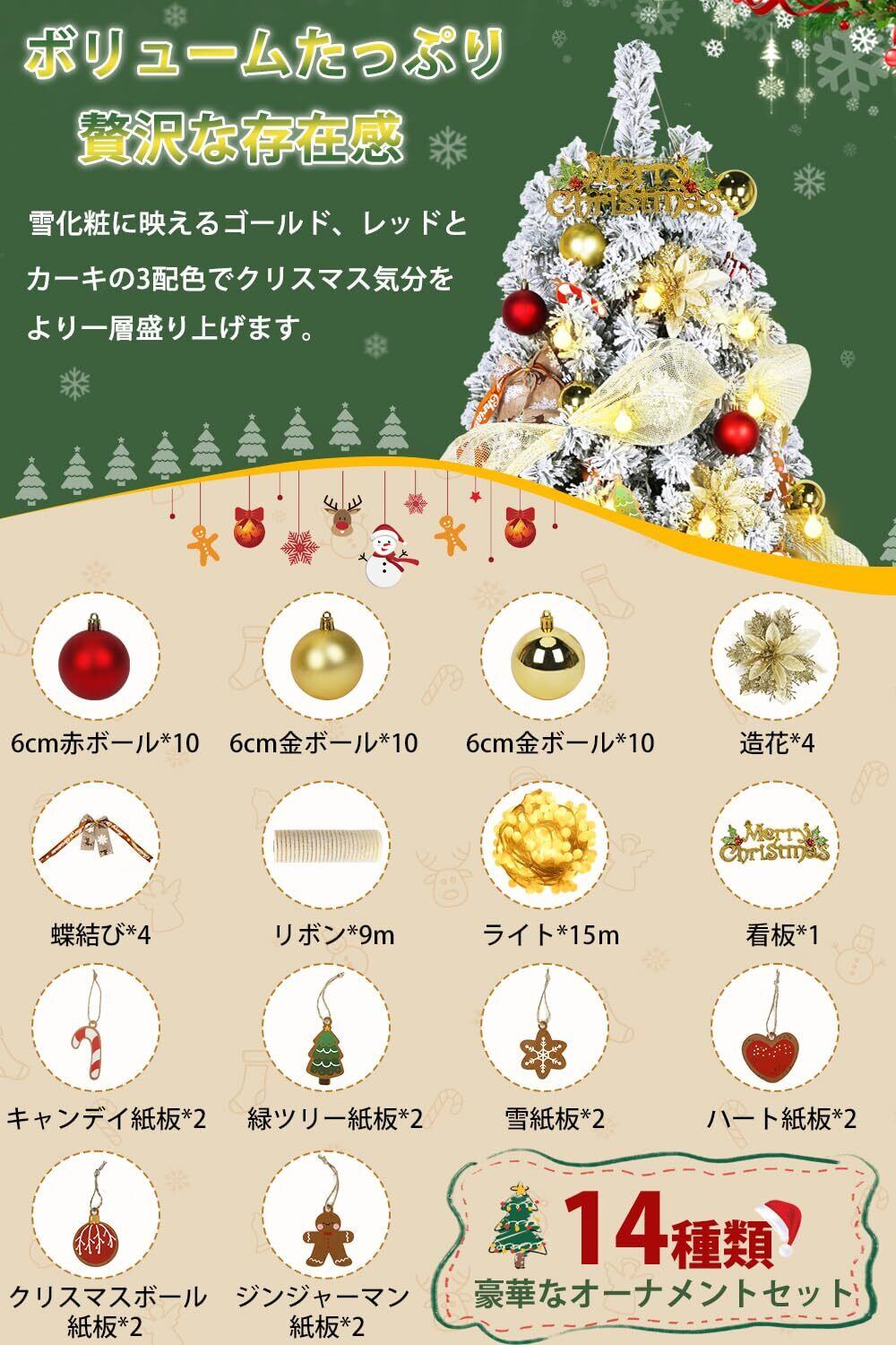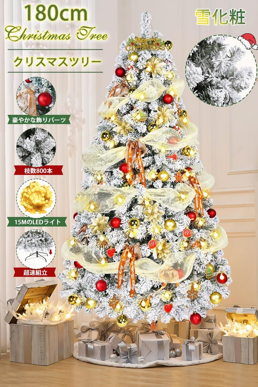 クリスマスツリー180cm 雪化粧 豪華800枝数 15m-LED電飾付き Christmas tree 高濃密度 白 ツリー オーナメントセット 自動展開式 北欧風 飾り付き クリスマスボール・リボン・造花付き 屋内・屋外用クリスマスグッズ 店舗装飾