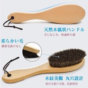 【天然毛ブラシ】ブラシ部分が大変柔らかく長いため、カシミアからウールまで幅広い衣類のお手入れが可能です。毛を使った服地を傷めずホコリをしっかり払い落してくれる洋服ブラシ。