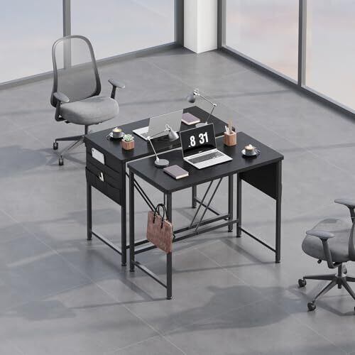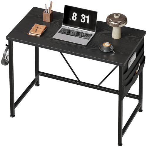 YeTom 机 パソコンデスク 机 pc デスク つくえ 幅80*奥行40cm シンプル コンパクトデスク 収納袋付き勉強机 フック付き学習机 モニターアーム取付対応 組立簡単 テレワーク 黒い