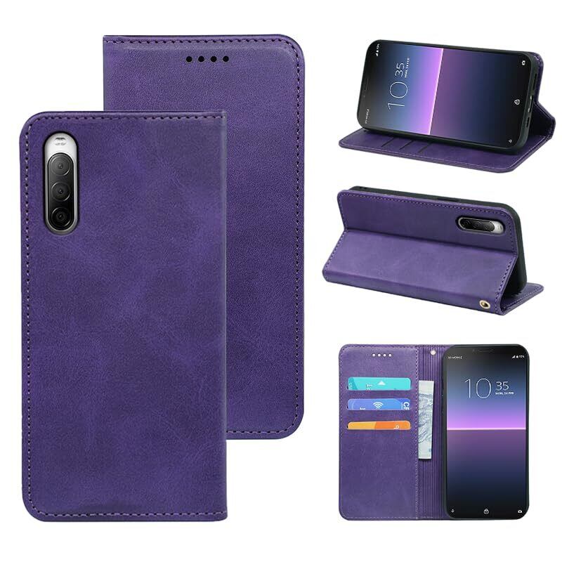 Xperia 10 II ケース 手帳型 エクスぺリア10 II SO-41A SOV43 手帳型ケース Xperia 10 II カバー 手帳型 PUレザー カード収納 財布型 耐衝撃 ケース マグネット スタンド機能付き 5色(Xperia 10 II SO-41A SOV43 ケース 手帳型) (深い紫)