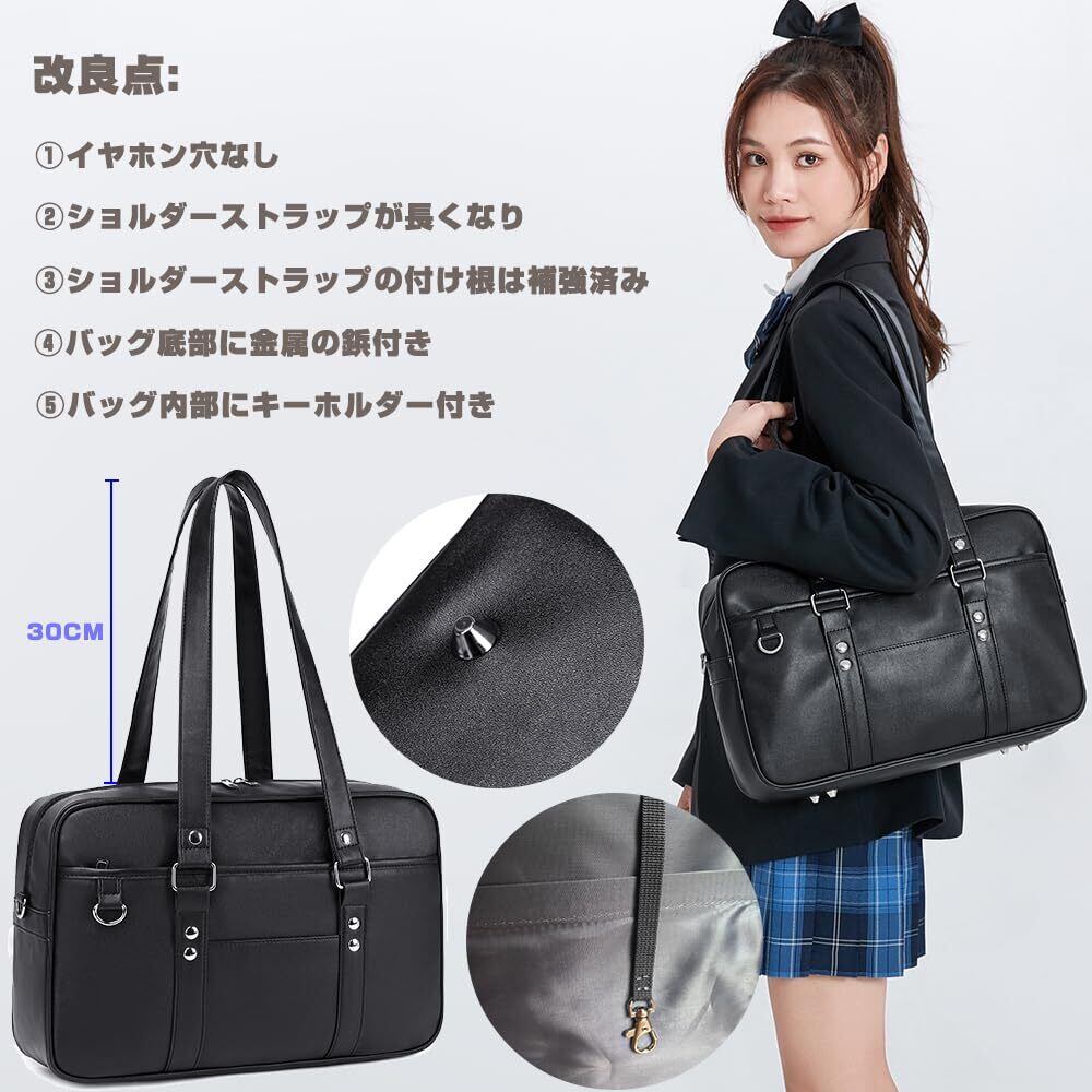 [CHUULII] スクールバッグ スクバ 合皮 女子 高校生 学生 JK 制服 通学 通塾 ボスドンバッグ 大容量 肩紐長い
