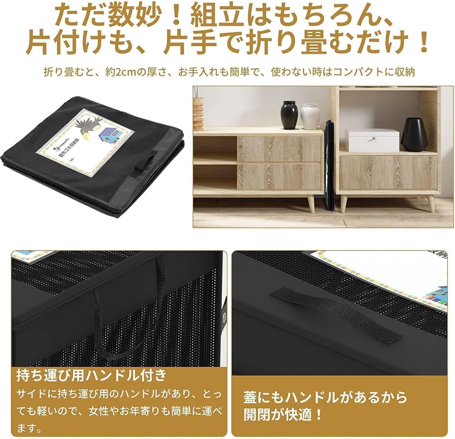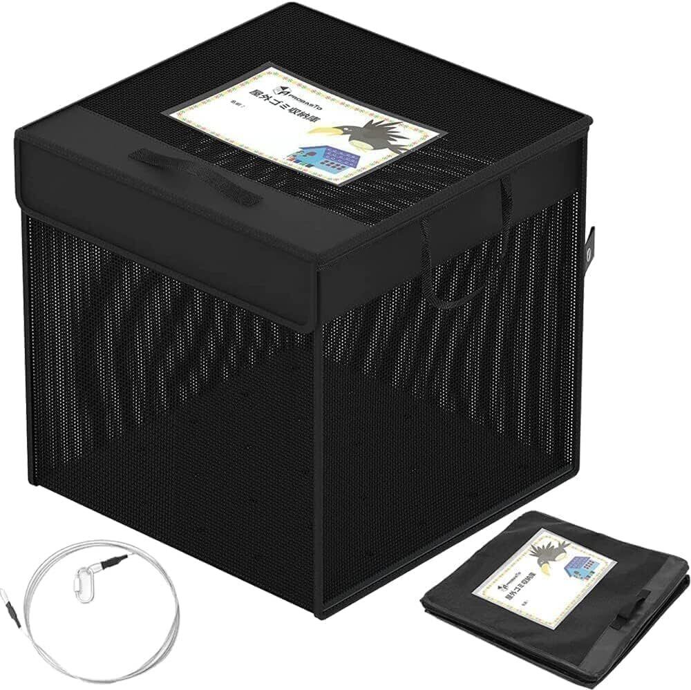 【カラスよけ屋外用収納ボックス】カラスだけではなく猫や犬などの動物からゴミを守る、取っ手付きの折り畳み式ネットボックスです。ボックス型のゴミネットは取り扱いやすい構造となっています。開閉がしやすく、紙を入れられる透明なポケットを搭載しています。2.5mmの細かい網目を採用しているため、鳥のくちばしなどの侵入を防ぎ中身をガード。ポリエチレン材質で水洗いも可能なため、清潔な状態が保てます。