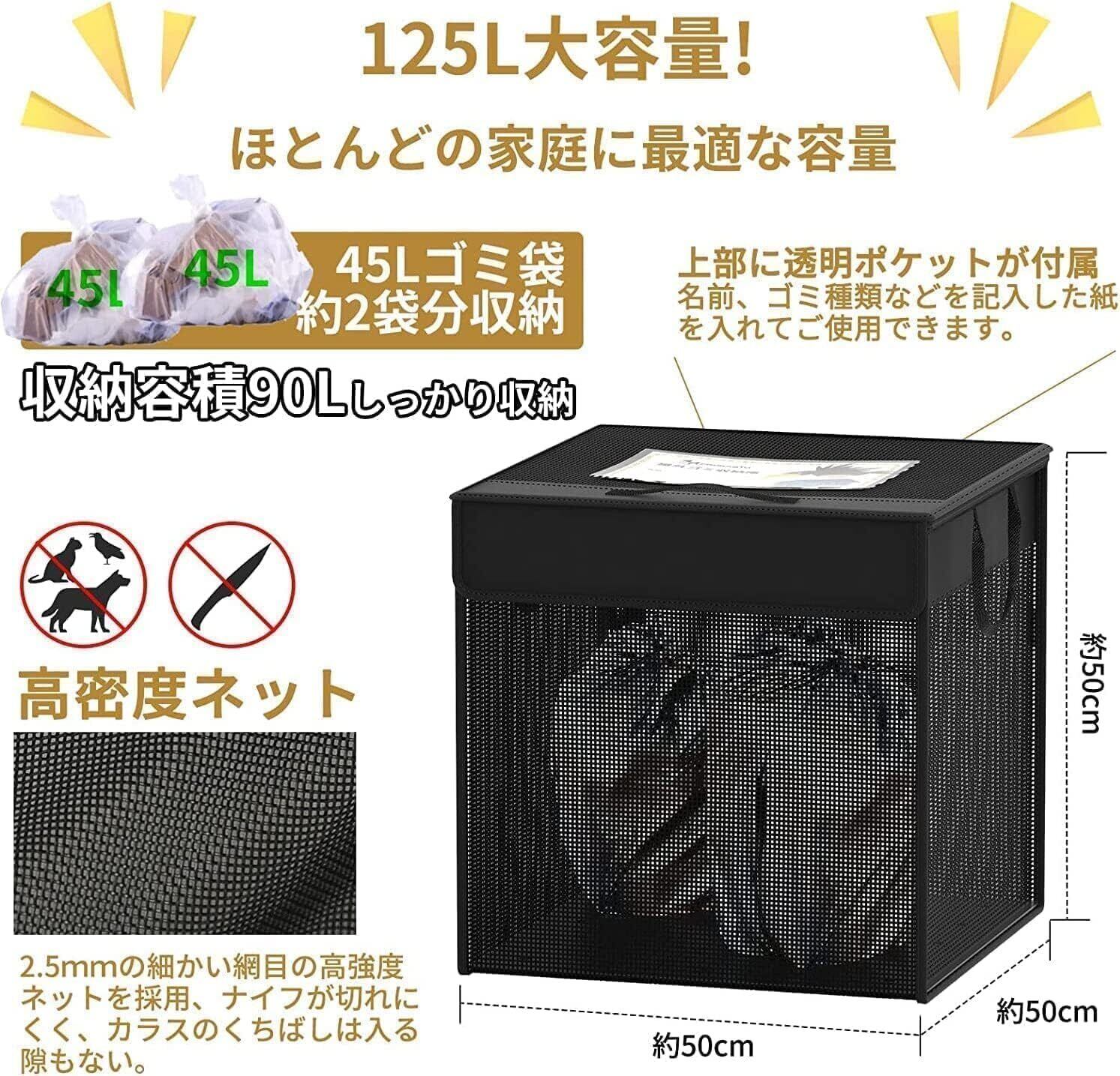 カラスよけネットゴミネット 屋外ゴミ収納庫 ファスナー付き マジックテープ付き 大容量 折りたたみ式 ゴミ収集ボックス 野良猫よけ ボックス (125L)