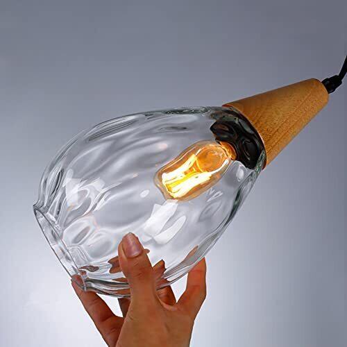 【材質】:ガラスシェード+木製ソケット 【カラー】:クリアガラス 【サイズ】:幅16cmx高さ30cm 【重量】:約1.2kg 【コード】:10cm~120cm(調節可能)【口金】:E26・40W・100V 【電球対応】:LED、白熱灯、蛍光灯 【点灯方式】:壁スイッチ 【電球別売】:をご注意ください