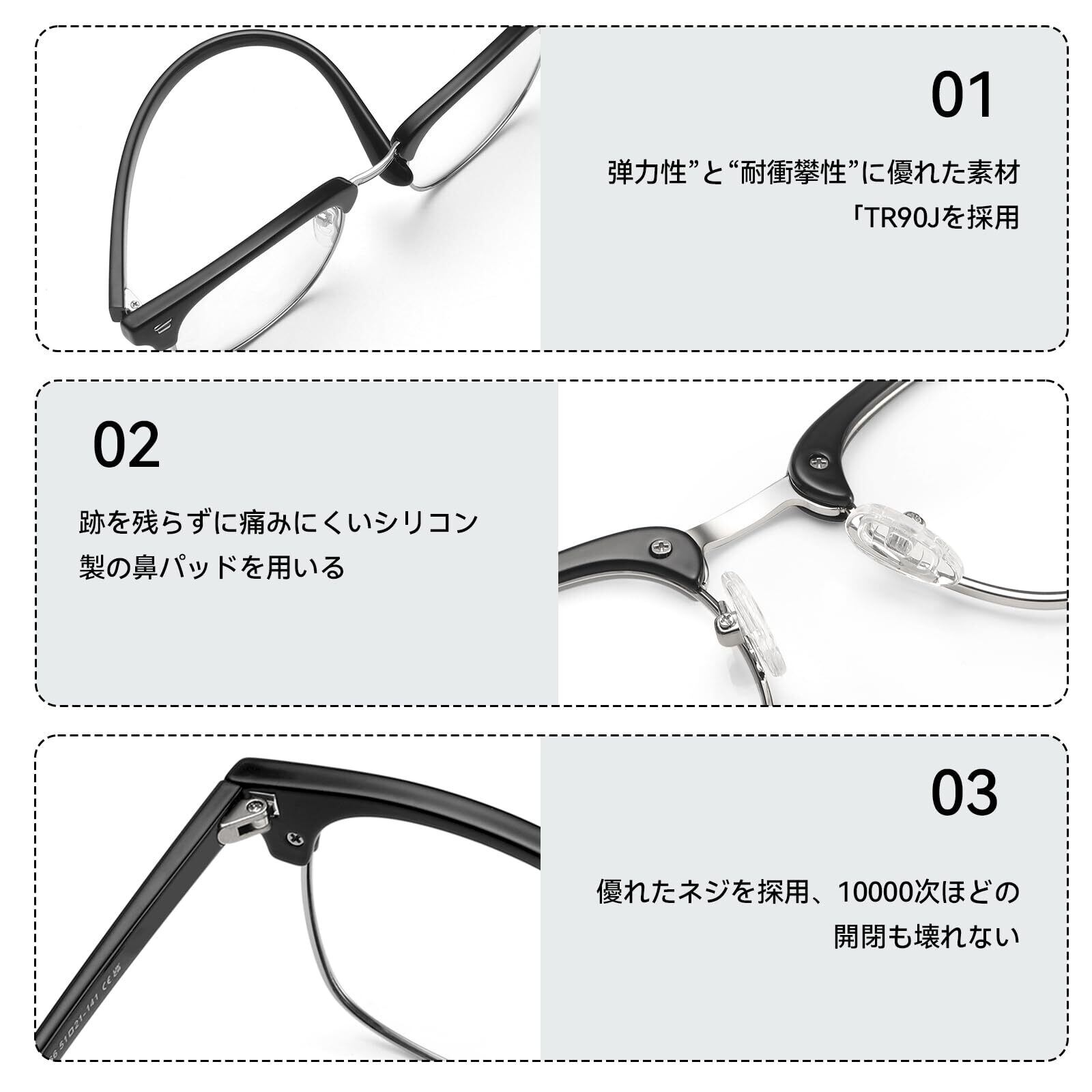 【高品質素材】高品質のブルーライト対策レンズを採用し、可視光線透過率は高く、色収差が低い。フレームはTR-90+金属素材でできており、かけないほど軽さは快適な掛け心地をもたらします。日本人に合わせてデザインは、どんな顔幅にもお似合いです。