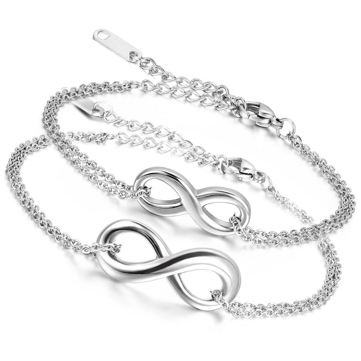 カップル ブレスレット お揃い ステンレス アンクレット: 無限大 8字 シルバー 愛の証 レディース バングル 手脚も適合 シンプル ジュエリー 可愛い クリスマス バレンタインデー-プレゼント 誕生日 記念日 2個セット ケース付き | yankees