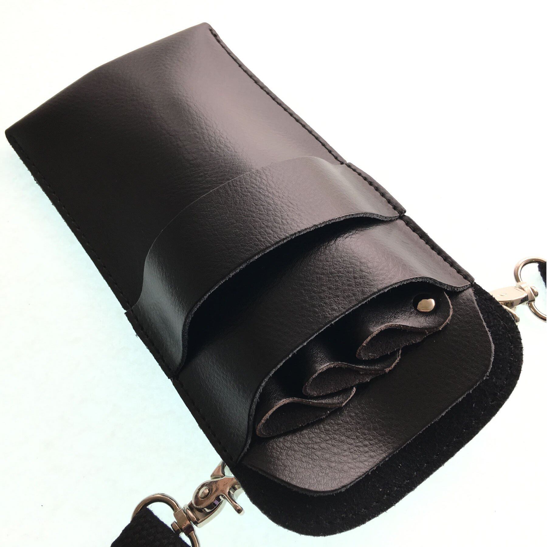 【GLASS FROG】シザーケース ハサミ3丁 本革 美容師 トリマー コンパクト (ブラック)