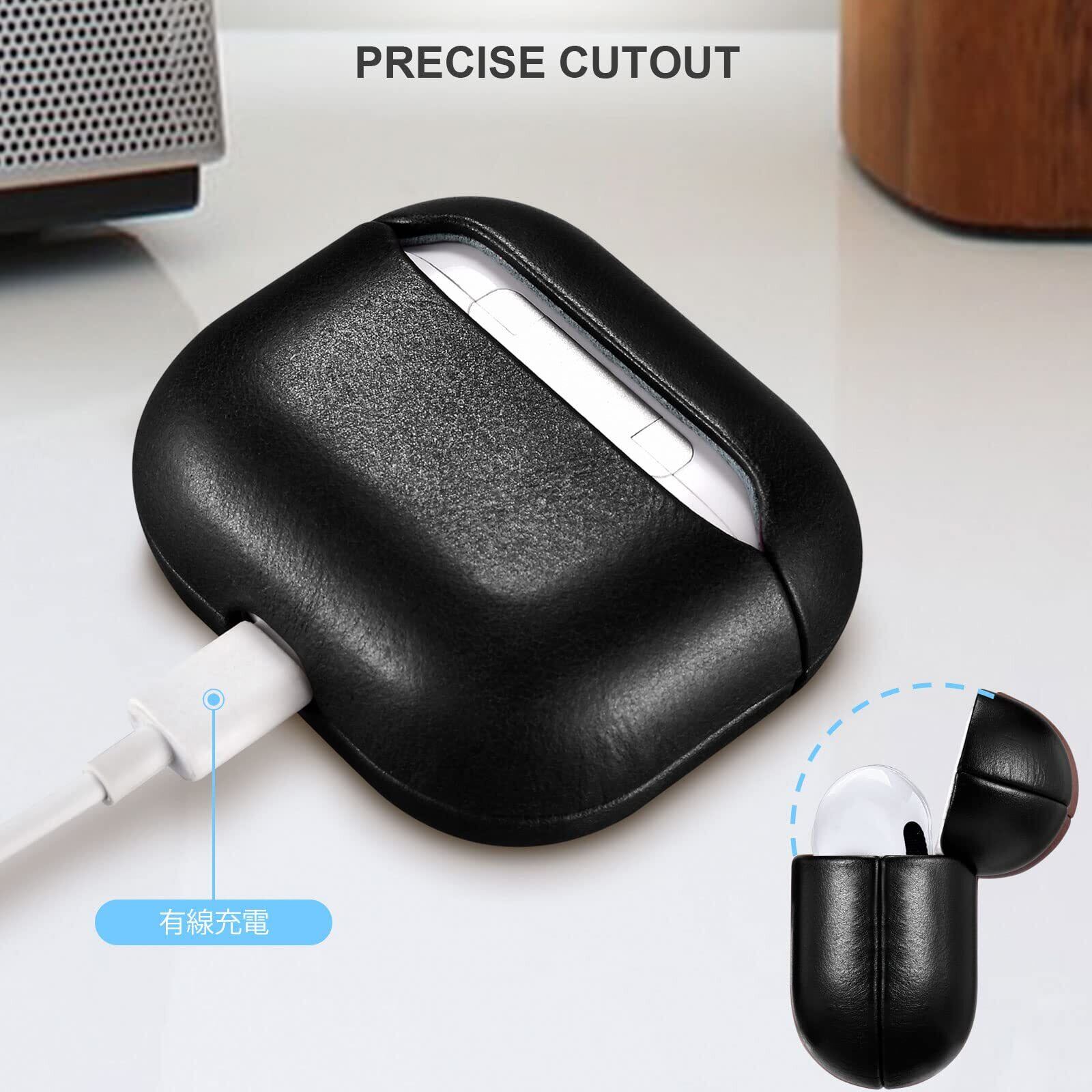 【高品質のレザー素材】AirPods 3 レザーカバー高品質の革素材を使用し、優れた仕上がり、耐久性と高品質。 柔らかい裏地はAirPods3の元のデザインを破壊しません。革素材は滑らかさに優れています、指紋汚れを防止し、AirPods 3をキズや汚れからしっかり守ってくれます。