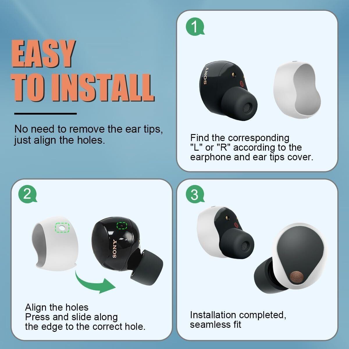 【互換性】CONTEME シリコンイヤーチップカバーは、Sony WF-1000XM5 2023 用に特別に設計されています。(充電ケースに収まり、ケースは閉じたままで、Sony XM5 はこれらのカバーで充電できます)