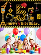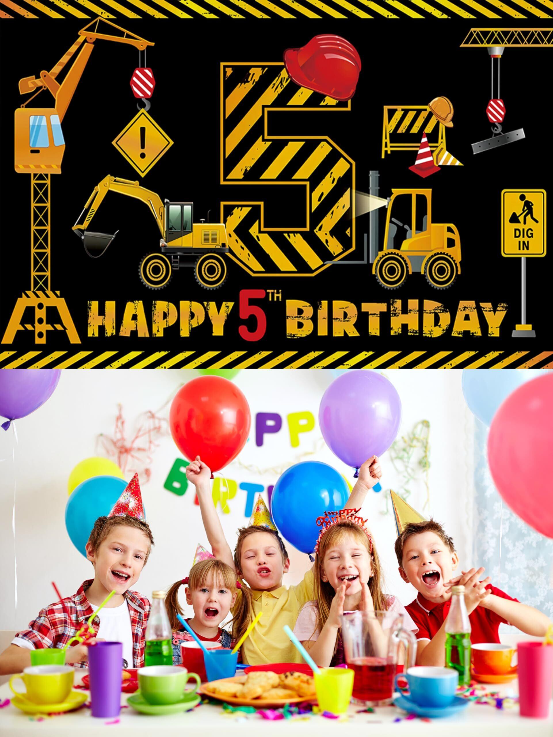 五歳 建設 バースデー タペストリー 男の子 工事 建築 誕生日 飾り付け タペストリー ショベルカー ミキサー車 クレーン車 誕生日 壁掛け 写真背景 Happy Birthday パーティー フォトポスター おうちスタジオ 180x120cm | yankees
