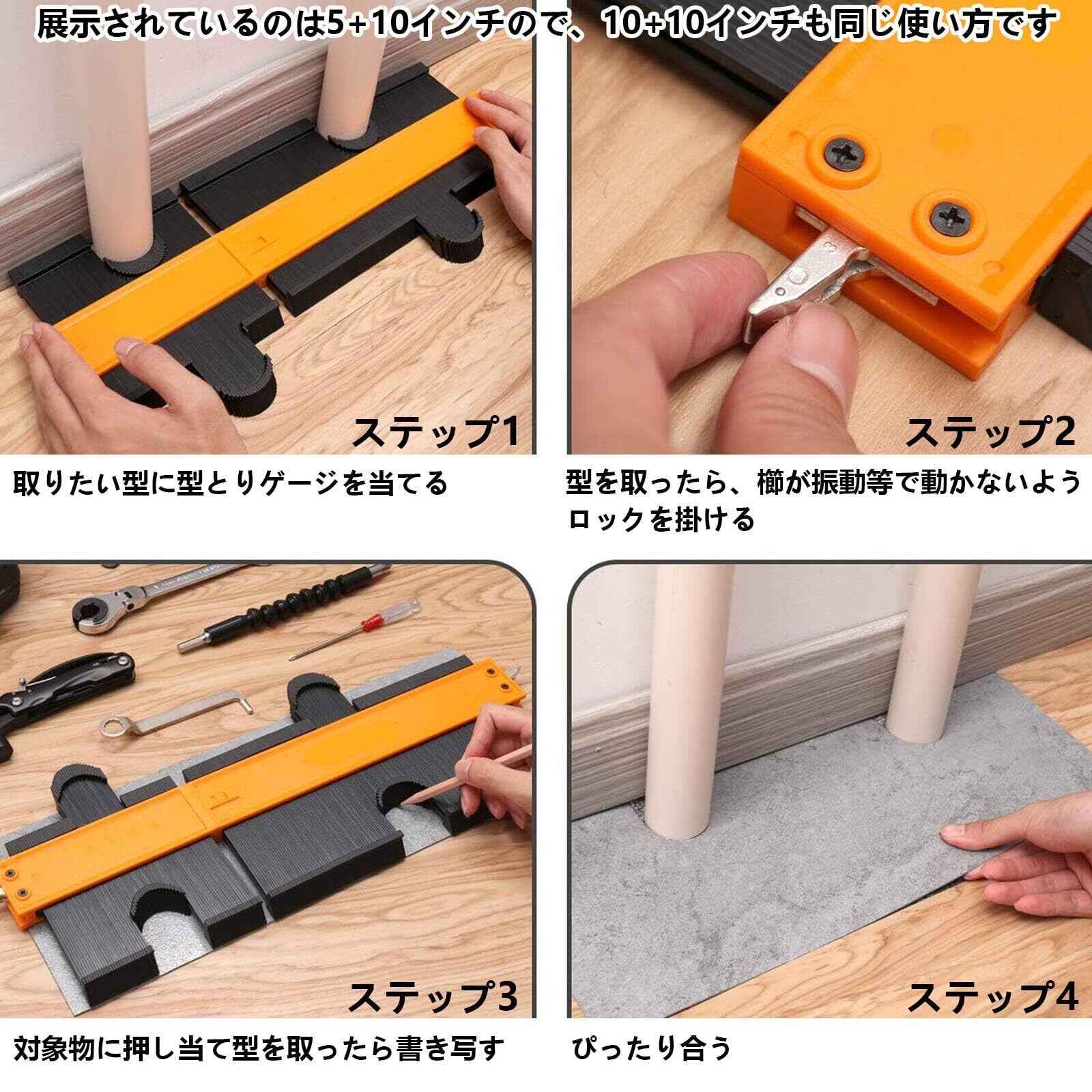 Yoimize 10インチと10インチ型取りゲージ 連結可能型取りゲージ セルフロック式 コンターゲージ イレギュラー形状 曲線定規 CMとInchの目盛り付き 輪郭コピー 目盛付き DIY測定工具 木工 高精度 (10+10インチ連結可能)