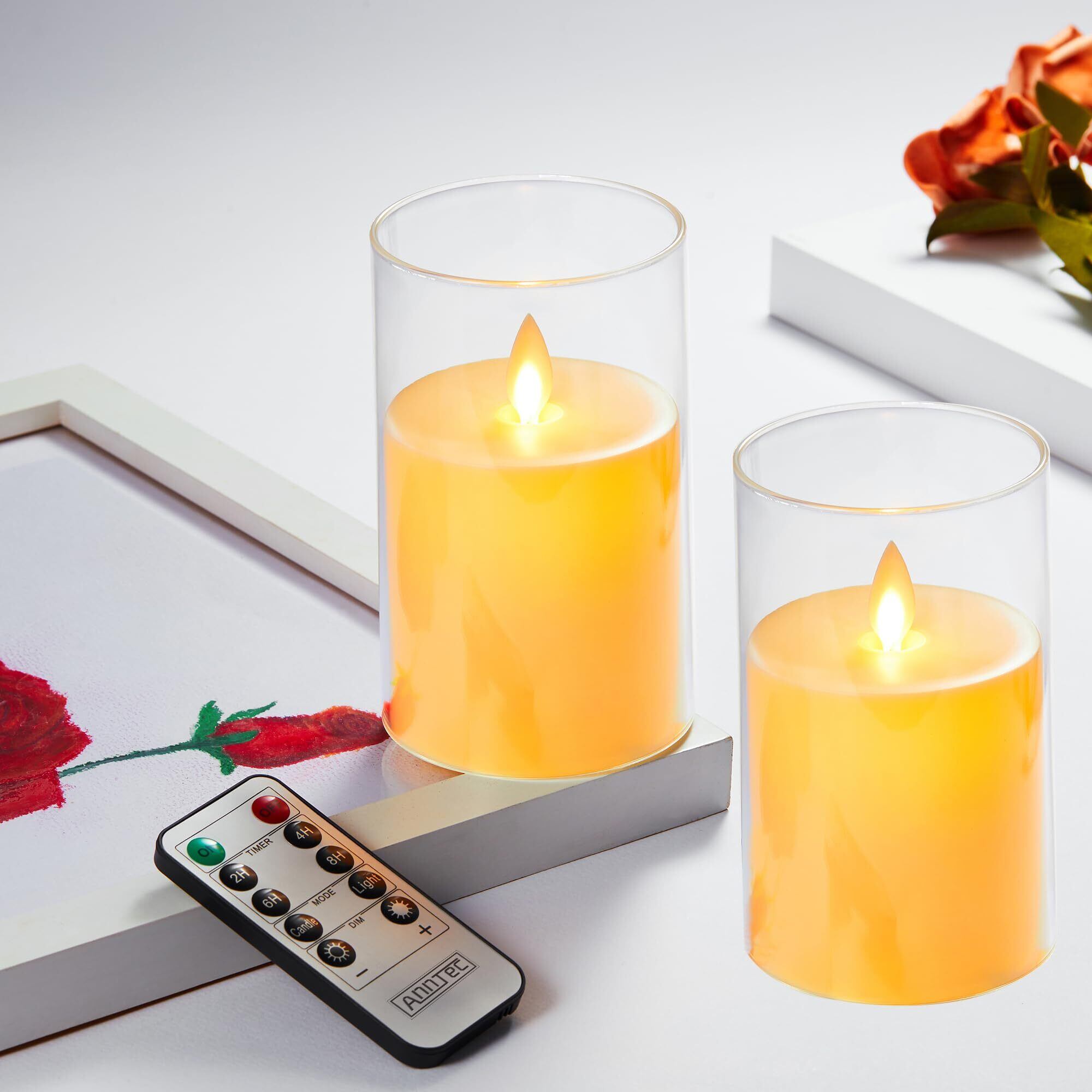 【2点セット】 LEDキャンドルライト AnnTec ロウソク LEDライトキャンドル 本物の炎のようにゆらめく 暖色光 火を使わない ゆらゆら揺れる 安全 省エネ 専用リモコン付き 明るさ調整 電池式 (直径7.5cm×高さ10cm)