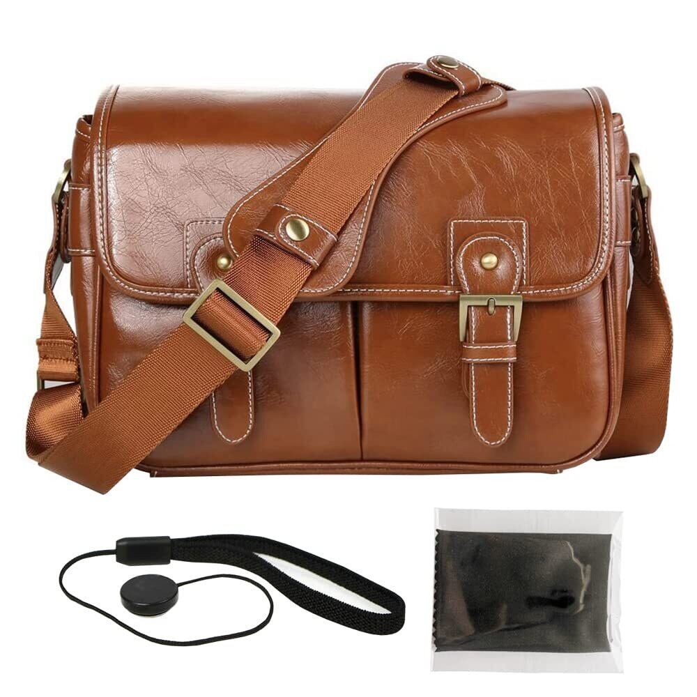 Giyomi 英国風 一眼レフ カメラバッグ/ショルダーバッグ ケース (防水加工) レトロ 本革調 仕立て (ライトブラウン)