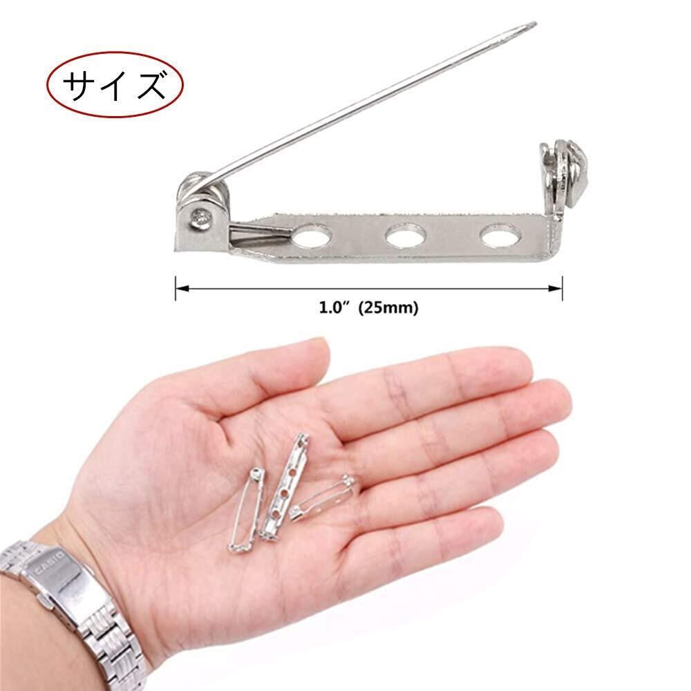 仕様:回転式ブローチピン(三つ穴) 数:50個。サイズ:25㎜。 素材:鉄 。カラー:シルバー/銀。