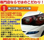 ヘッドライトやテールライトのドレスアップ用レンズフィルム 当店オリジナルブランド商品です。 ドレスアップだけでなく保護用としても活躍 曲面はヒートガン等で温めるとよく伸びるので貼り易いです。 裏面粘着シート 保護フィルム付き(マットブラック、ラメ入りを除く)