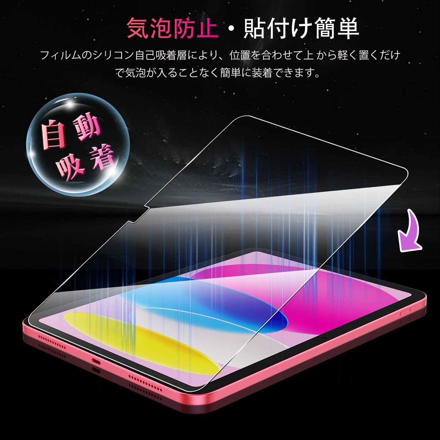 【対応機種】iPad 11インチ(A16)2025 / iPad 第10世代 2022 10.9インチ 専用 ガラスフィルム。iPad 第11世代保護フィルム1枚。