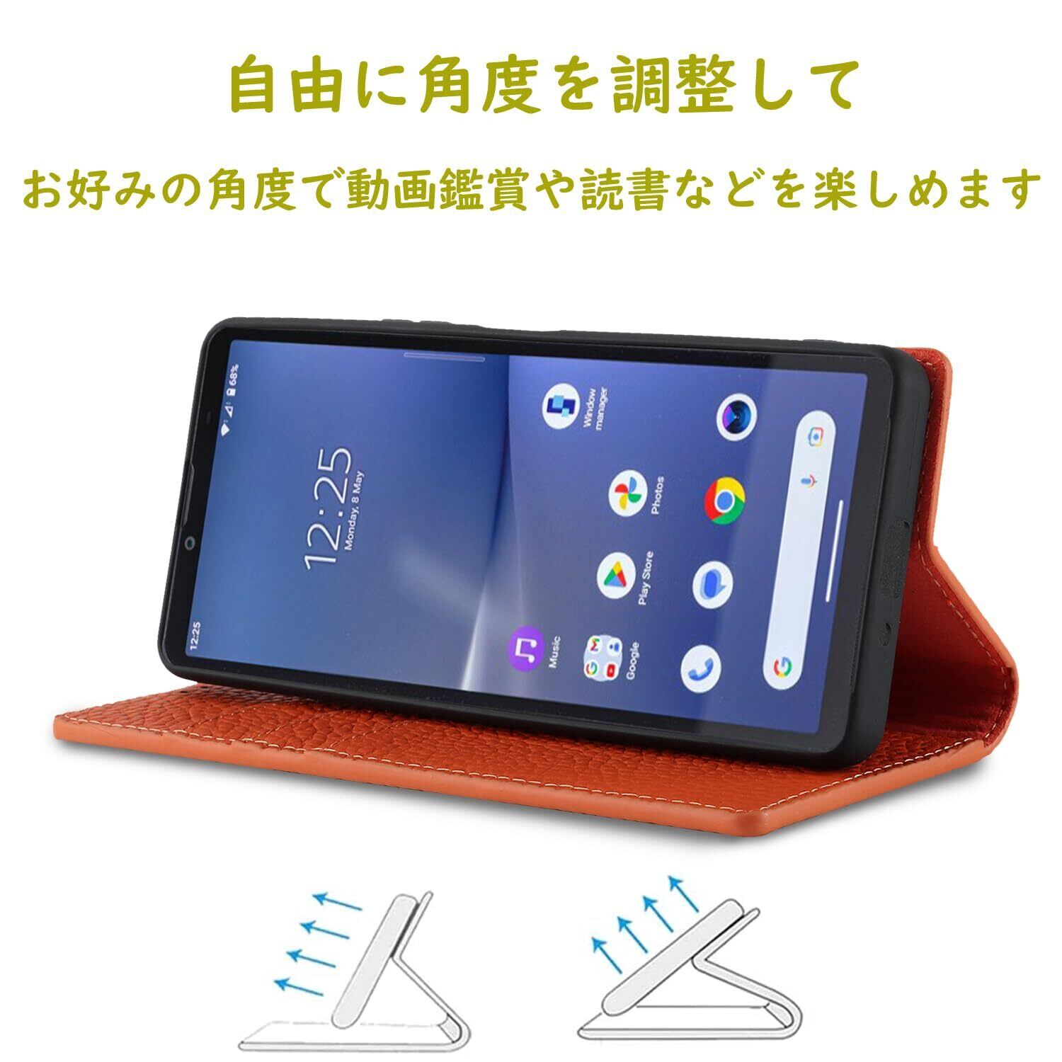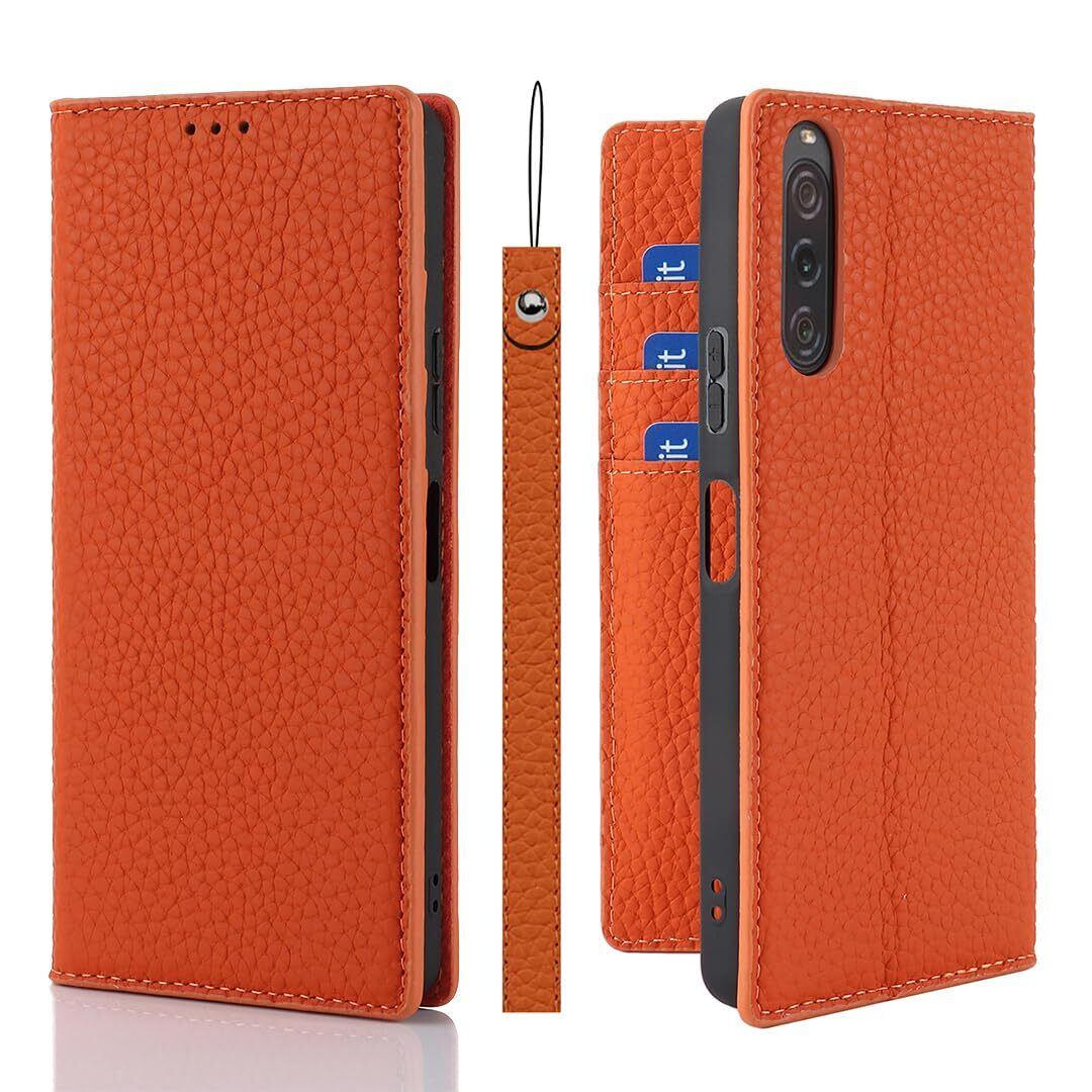 Havaya Xperia 10V ケース エクスペリア10 v ケース SOG11 ケース 手帳型 本革 ストラップ docomo SO-52D SONY ソニー 第五世代 au 耐衝撃 カバー SoftBank カード収納 スタンド機能 レザー -オレンジ