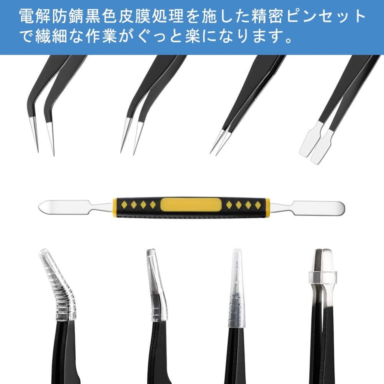 【精密ピンセット内容】10個セット。ESD-10、ESD-11、ESD-12、ESD-13、ESD-14、ESD-15、ESD-16、ESD-17、ESD-34A、Crowbar。収納袋付き。