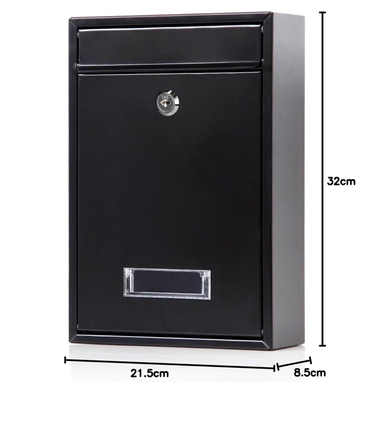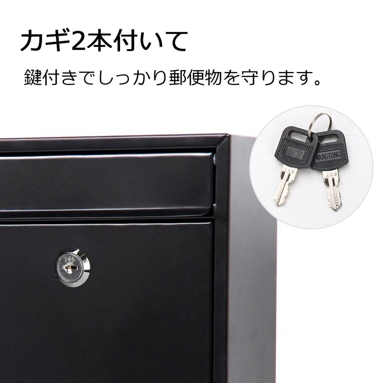Jssmst(ジェスマット) メールボックス ポスト 郵便受け 壁掛け キーロック式 鍵付き 金属製 Mail-06 (ブラック キーロック)