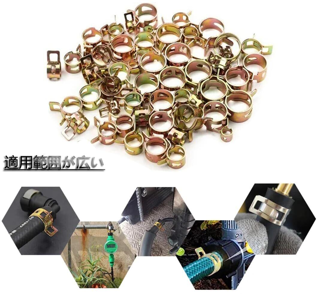 1.ホースクランプは優れた鋼材質で製造して、表面にて色亜鉛メッキされていて、耐久性が強く、錆にくいです。