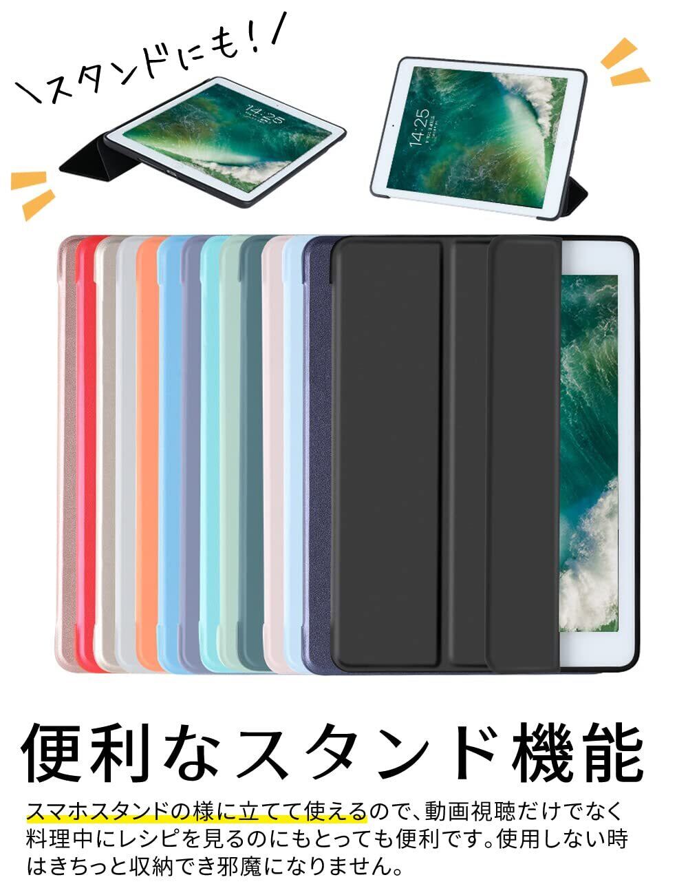 ddice iPadケース iPad 第5・6世代 9.7 inch 手帳型 アイパッドカバー シンプル ブック型カバー 三つ折りスタンド 耐衝撃カバー ケース カバー おしゃれ アイパッド iPadカバー 無地 シンプル オートスリープ (iPad 9.7inch 第5・6世代, ブラック) | yankees