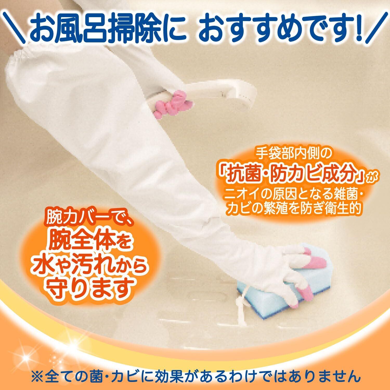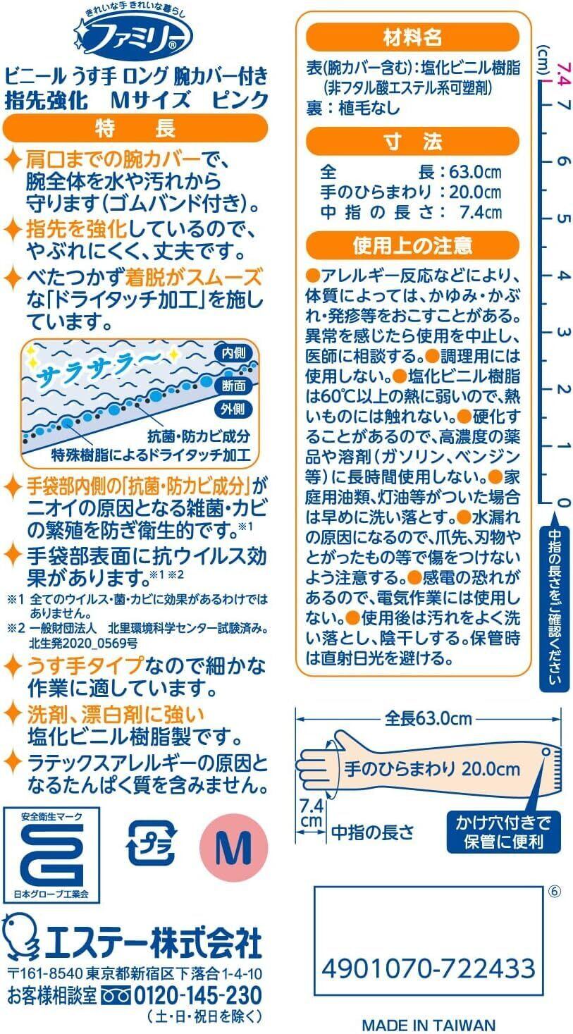 ファミリー [まとめ買い] ビニール手袋 うす手 ロングタイプ 腕カバー付き 指先強化 Mサイズ ピンク×2個 (水仕事に最適) キッチン 食器洗い 風呂掃除 洗濯 ビニール 手袋