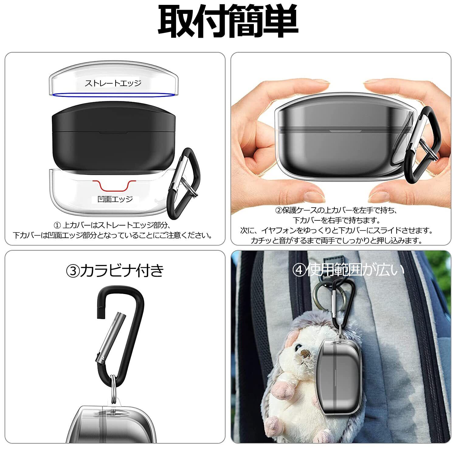 「腰やカバンに装着できるカラビナ」WF-1000XM4 ケースにカラビナが付いて、ベルトループやカバンに付けることが。 WF-1000XM4 を落とす不安や紛失の悩みを解消できます。 ※カラビナを強く引っ張ると破けてしまうおそれがありますので、ご注意ください。