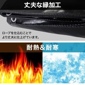 【頑丈でしなやかなPVC生地】 防水&UVカット効果で積み荷を守ります。 耐寒・耐熱性も抜群で、寒い冬でも厚い夏でも、季節問わず一年中使用できます。 縁にはロープが仕込んであり、ほつれないようにより丈夫にして耐久性をアップ。