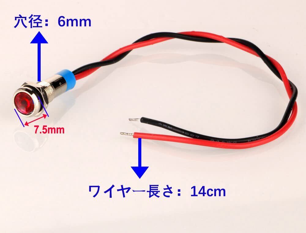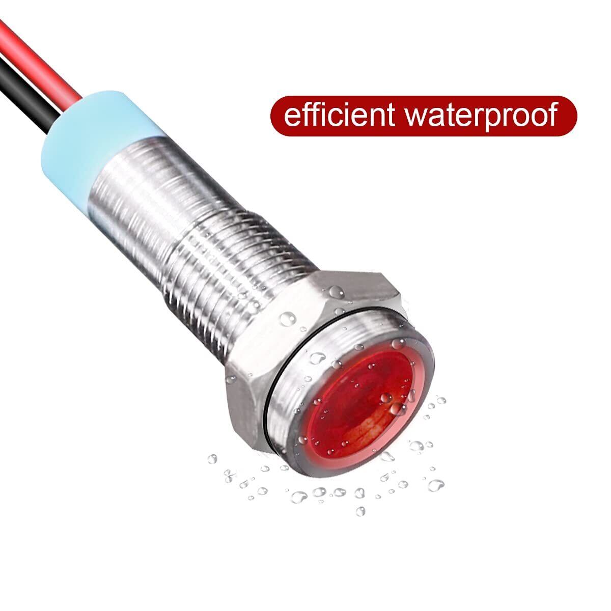 Kiligen 10個 6mm AC/DC 12-24V LEDメタルインジケーターライト防水信号ランプパイロットダッシュワイヤー付き指向性(赤)