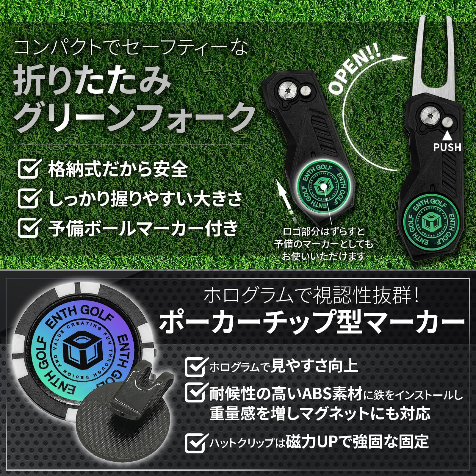 ENTH 1000D 高耐久ナイロン ゴルフボールケース【2個用】開閉式グリーンフォーク ゴルフ マーカー ハットクリップ 4点セット