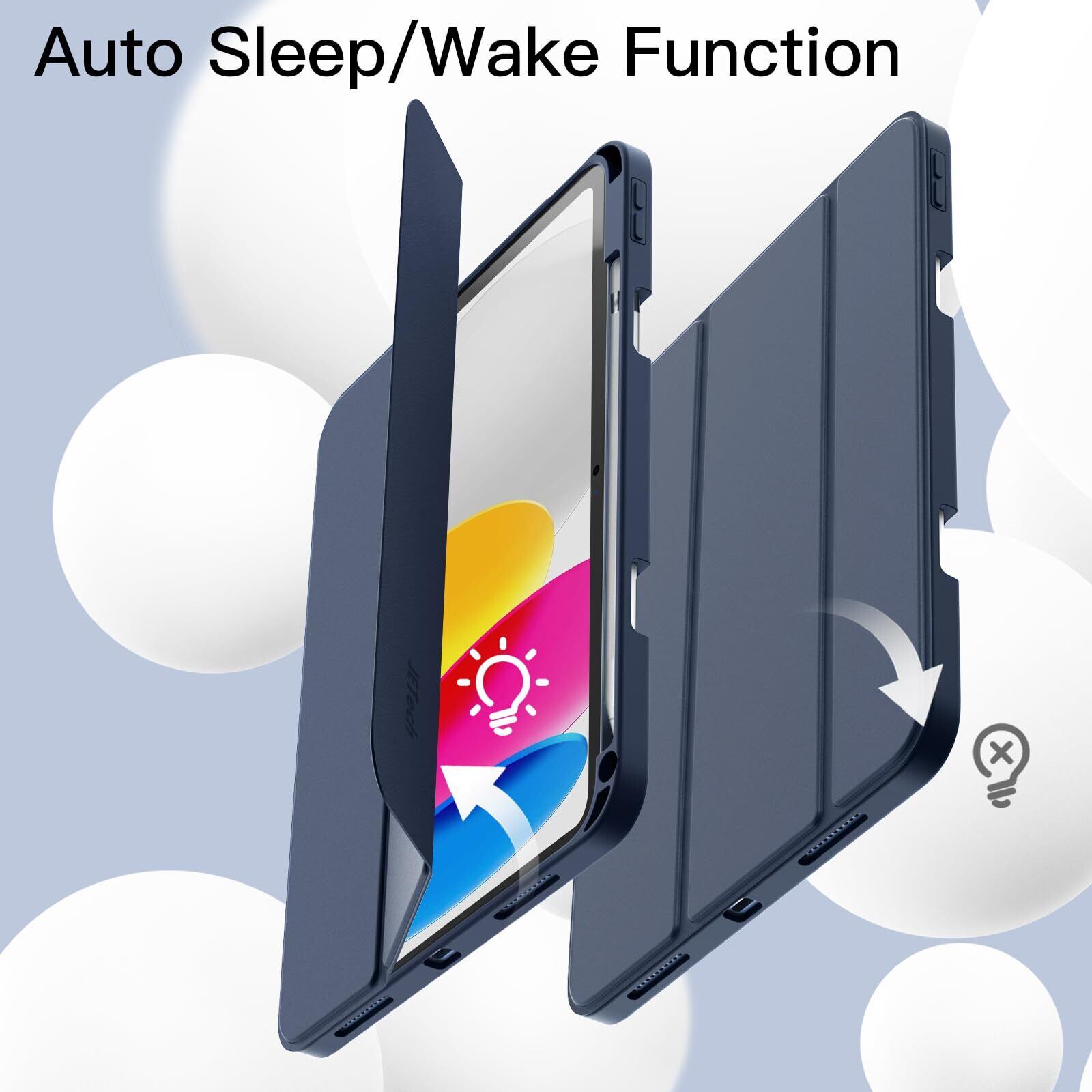 JETech iPad(A16)ケース 第11/10世代(2025/2022モデル)用Pencilホルダー付き 対応 ソフトTPUバック スリム保護カバー オートウェイクアップ/スリープ機能付き (ディープネイビー)