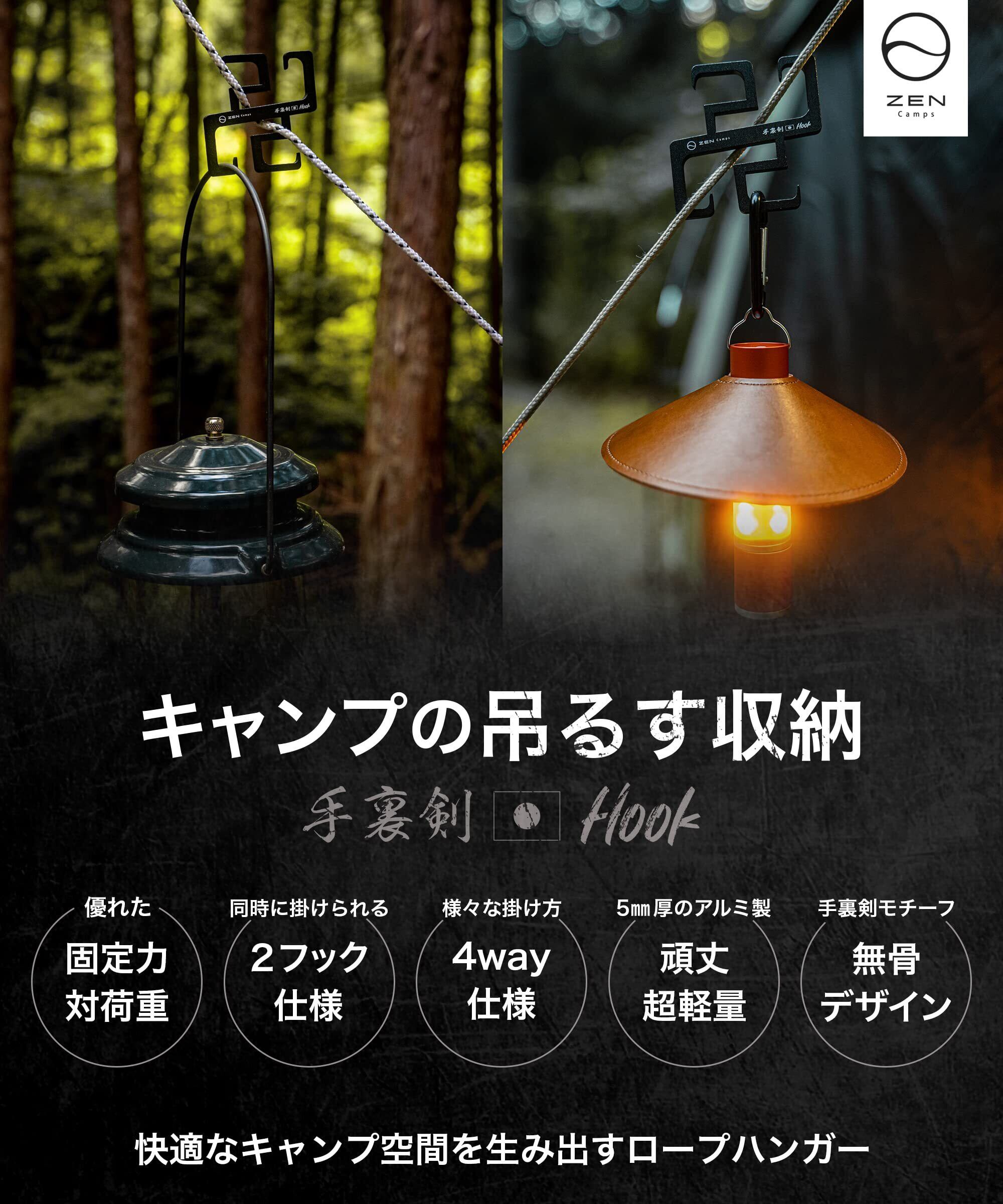 ZEN Camps 手裏剣フック ロープフック ロープハンガー 引掛けフック S字フック キャンプ テント タープ キャンプ アウトドア