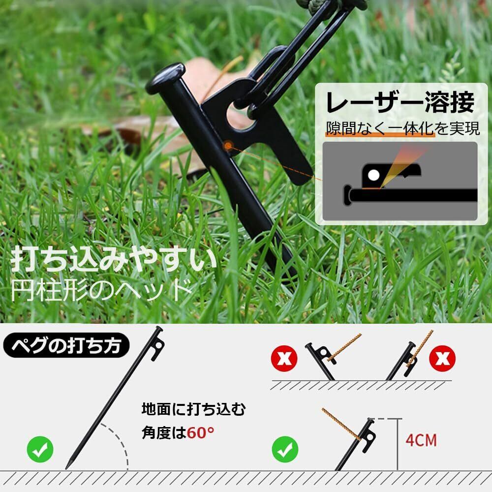 ◆【丈夫な材質】:高炭素鋼製のテントペグが16本付き、頑丈で折れにくい。砂利や石が混じった固い地面でも入り込みが良く、ガッチリと固定します。ペグ表面は黒電着塗装処理を施すことにより、高い防サビ性と耐久性を兼ね揃えております。