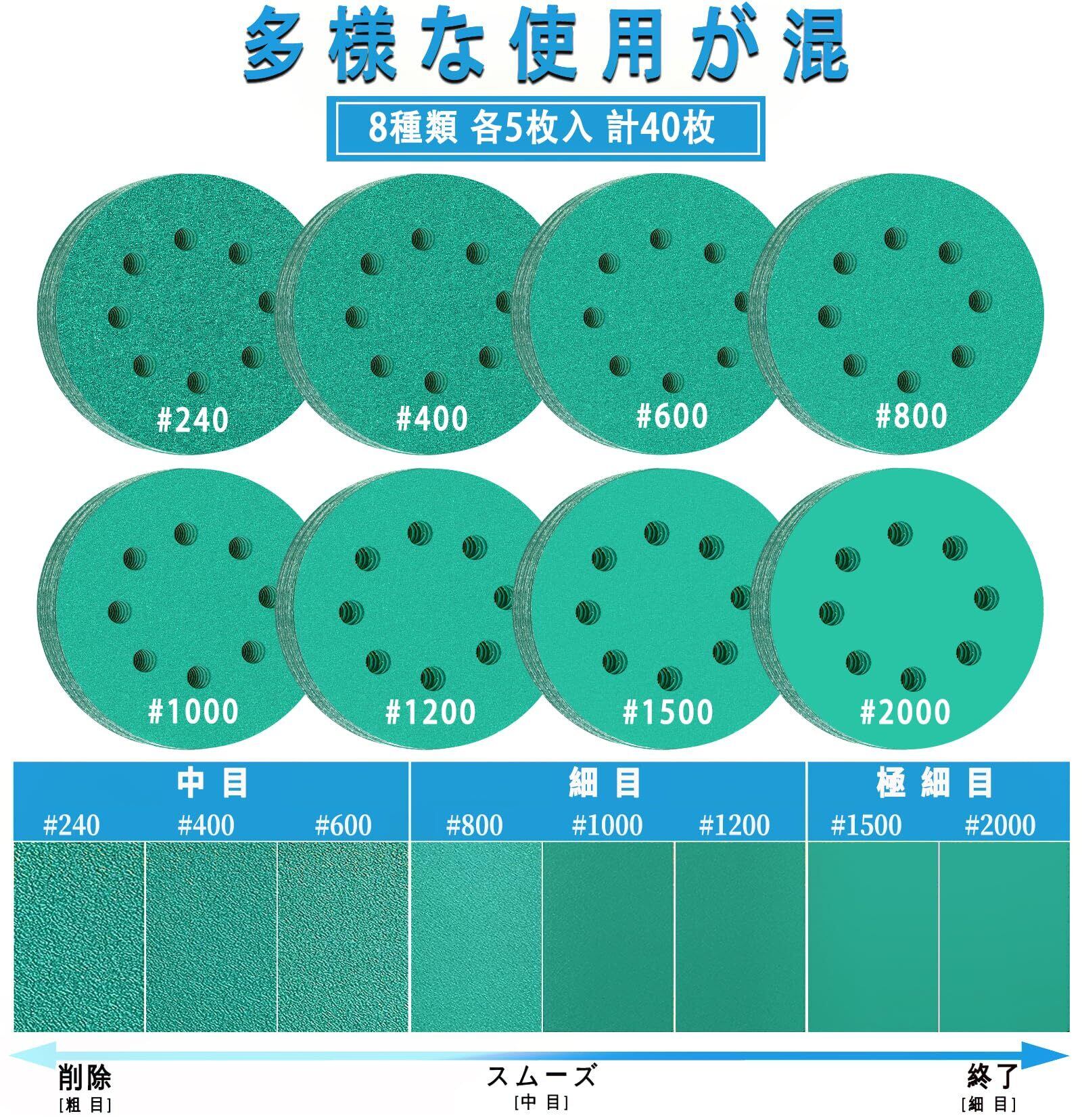 【使いやすいマジックテープ式】ベースは柔軟性の高いポリエステル繊維でできており、サンディング時のひび割れを防ぐ、高密度ナイロンの裏地と相まって、より強力な吸着特性を備えています;集塵用に8つの穴を事前に打ち抜きます 穴の位置も正確でした目詰まりの心配はありません
