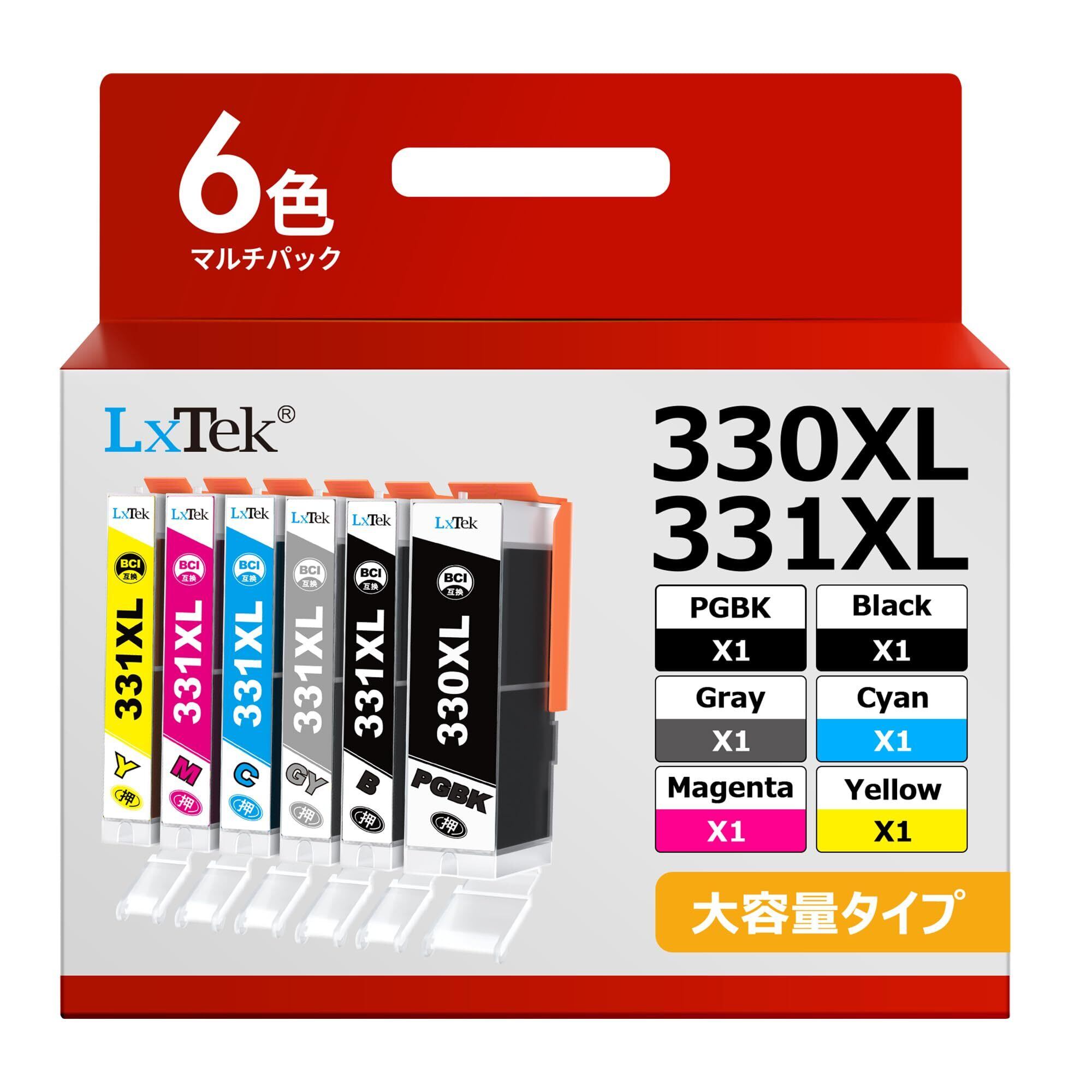 【パッケージ内容】LxTek キヤノン用 インク 330 331 大容量 6色マルチパック。BCI-330XLPGBK 顔料ブラック、BCI-331XLBK ブラック、BCI-331XLC シアン、BCI-331XLM マゼンタ、BCI-331XLY イエロー、BCI-331XLGY グレー 合計6本。